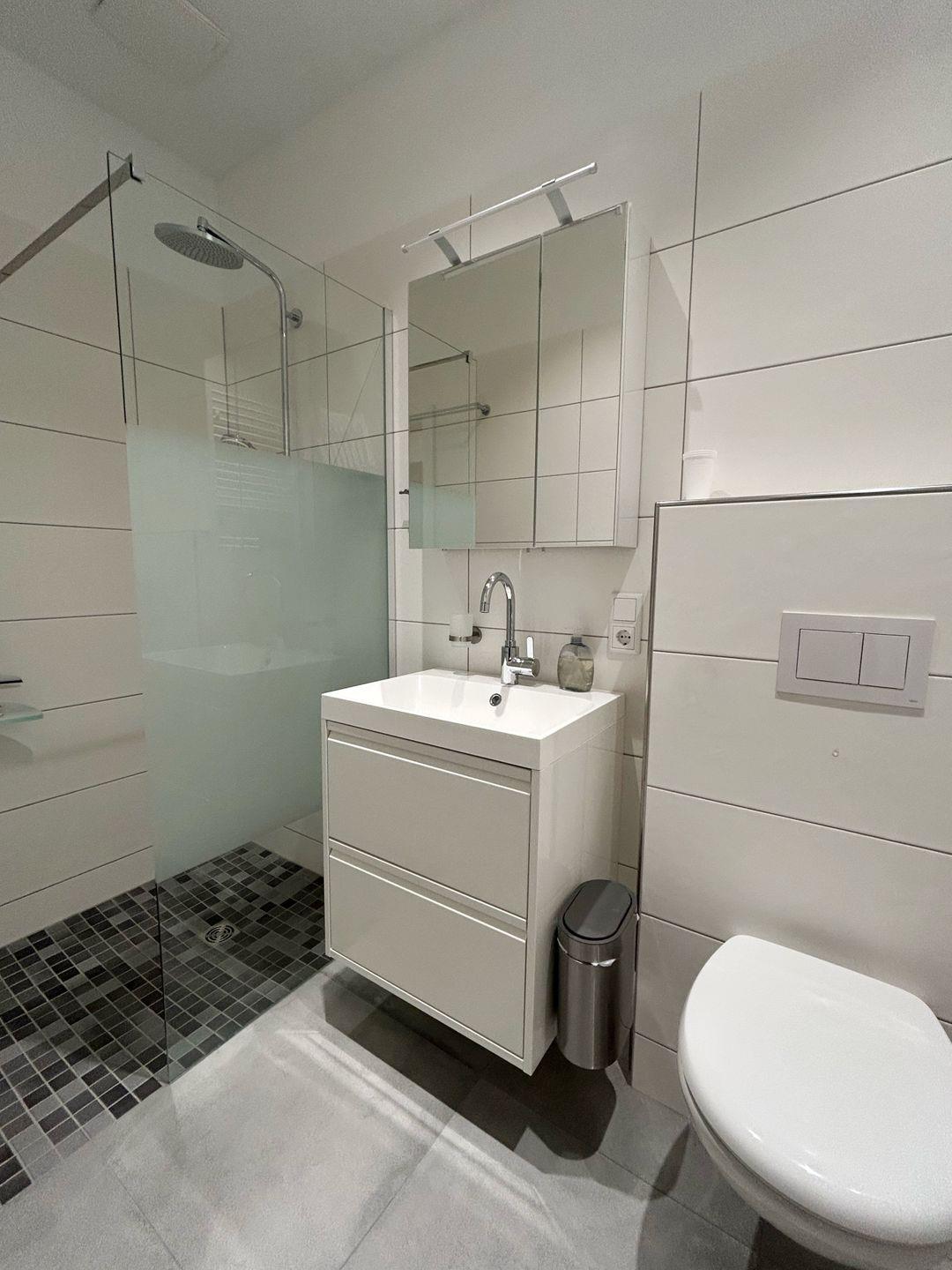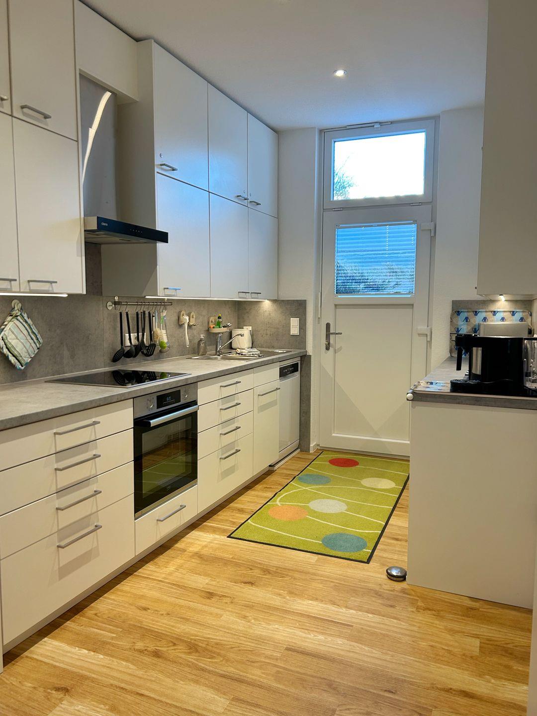 NEU nach Renovierung: Im Erdgeschoss erwartet Sie ein separates Schlafzimmer mit gemütlichem Doppelbett sowie eine großzügige Küche mit direktem Zugang zum offenen Wohnbereich. Von hier aus gelangen Sie auf die sonnige Terrasse – ideal zum Entspannen und Genießen.