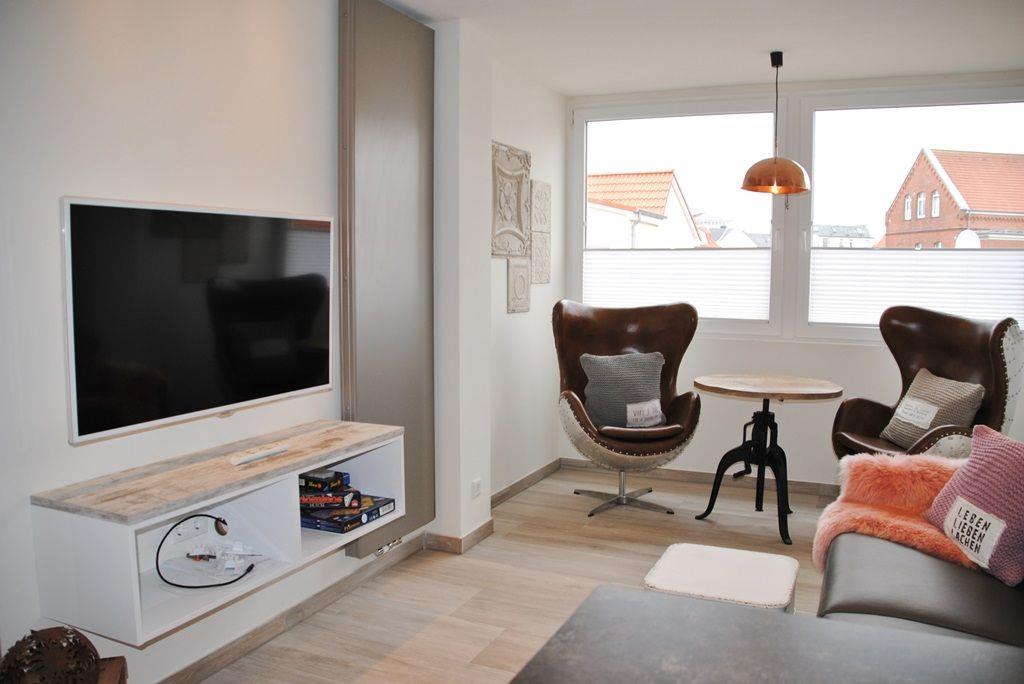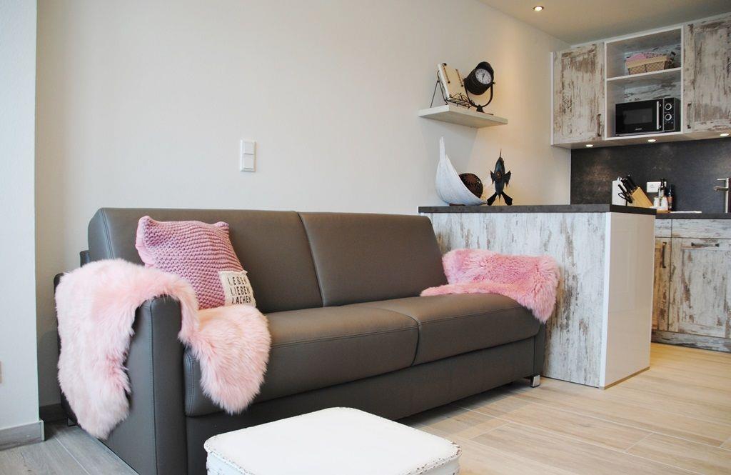 Gemütliches 1-Raum-Apartment mit moderner Ausstattung und Aufzug am Weststrand von Norderney, ideal für einen romantischen Urlaub zu zweit.