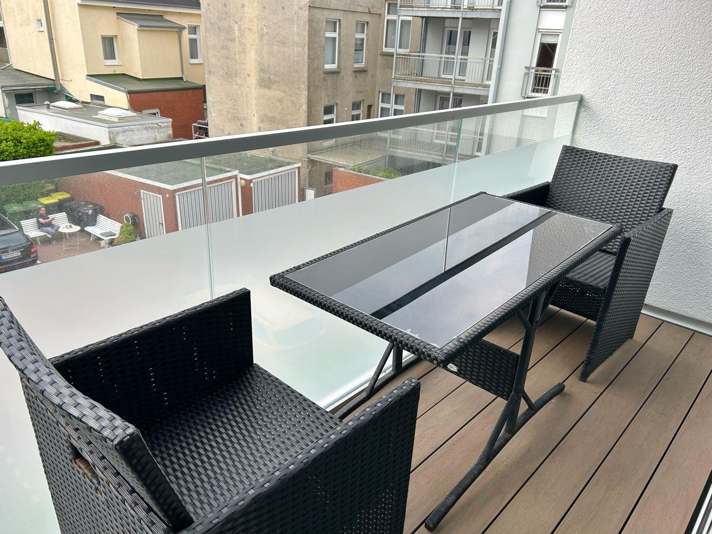 Stilvolles Design-Apartment in Norderney, nur 100 Meter vom Meer entfernt, mit Balkon, moderner Küche und kostenfreiem WLAN.