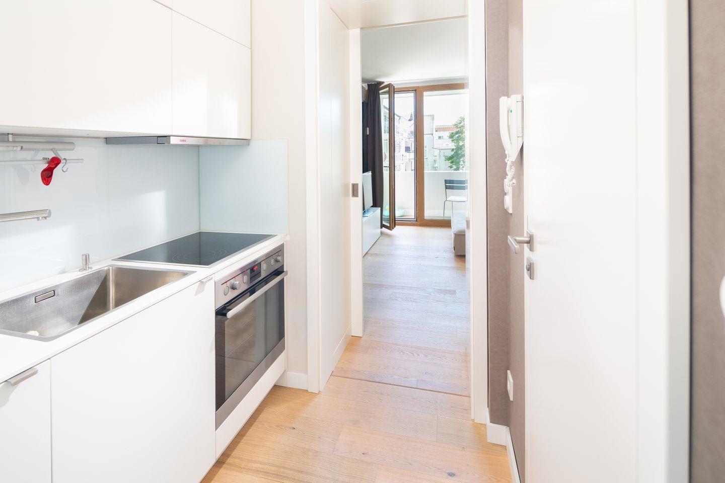Die moderne, gut ausgestattete Küche verfügt über 4 Kochplatten, einen Backofen, Kühlschrank, Nespresso-Kaffeemaschine und Filterkaffeemaschine.
