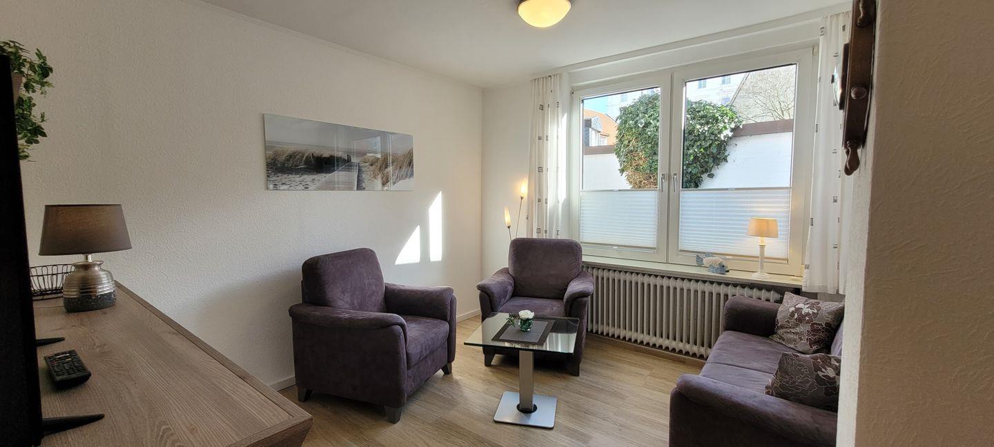 Gemütliche 3-Raum-Ferienwohnung in Norderney, wenige Gehminuten zum Weststrand, mit WLAN und Terrasse.