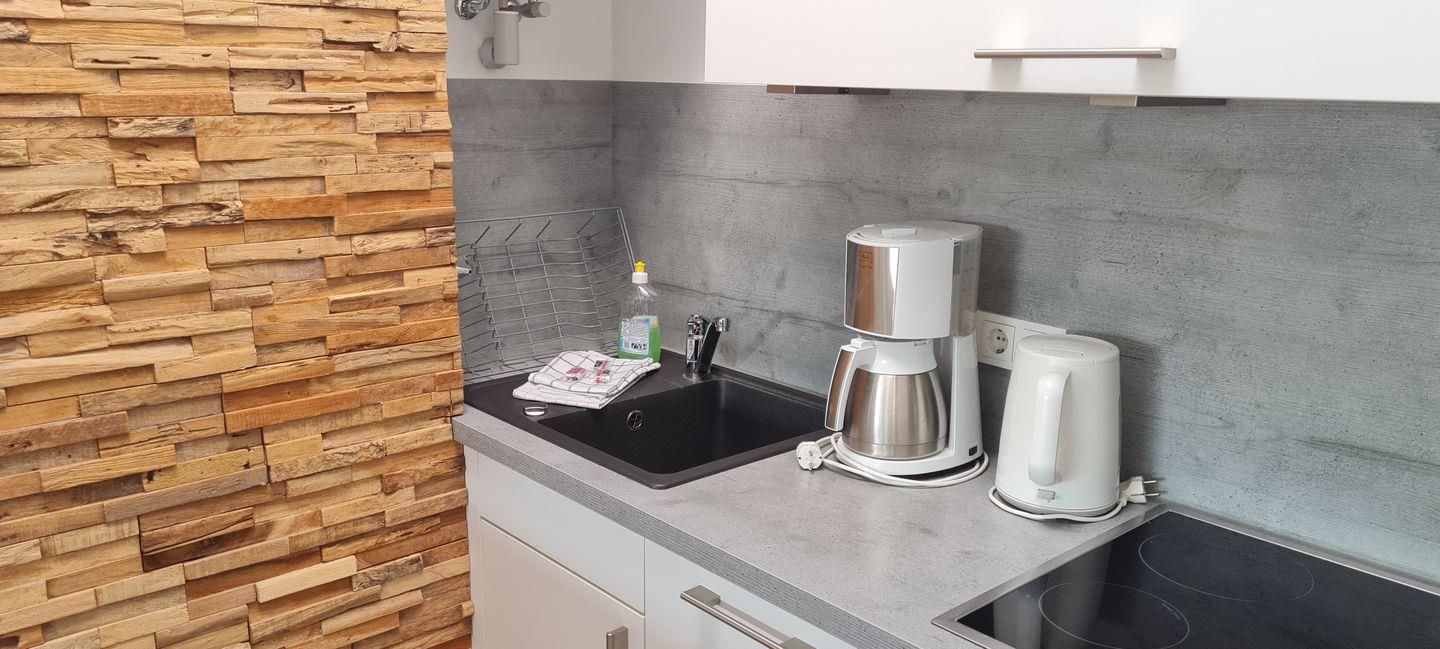 Seit Februar 2018 bereichert zudem eine neue Küche mit großem Kühlschrank, 4-Platten-Herd, Backofen mit integrierter Mikrowelle und Geschirrspülmaschine die Wohnung.