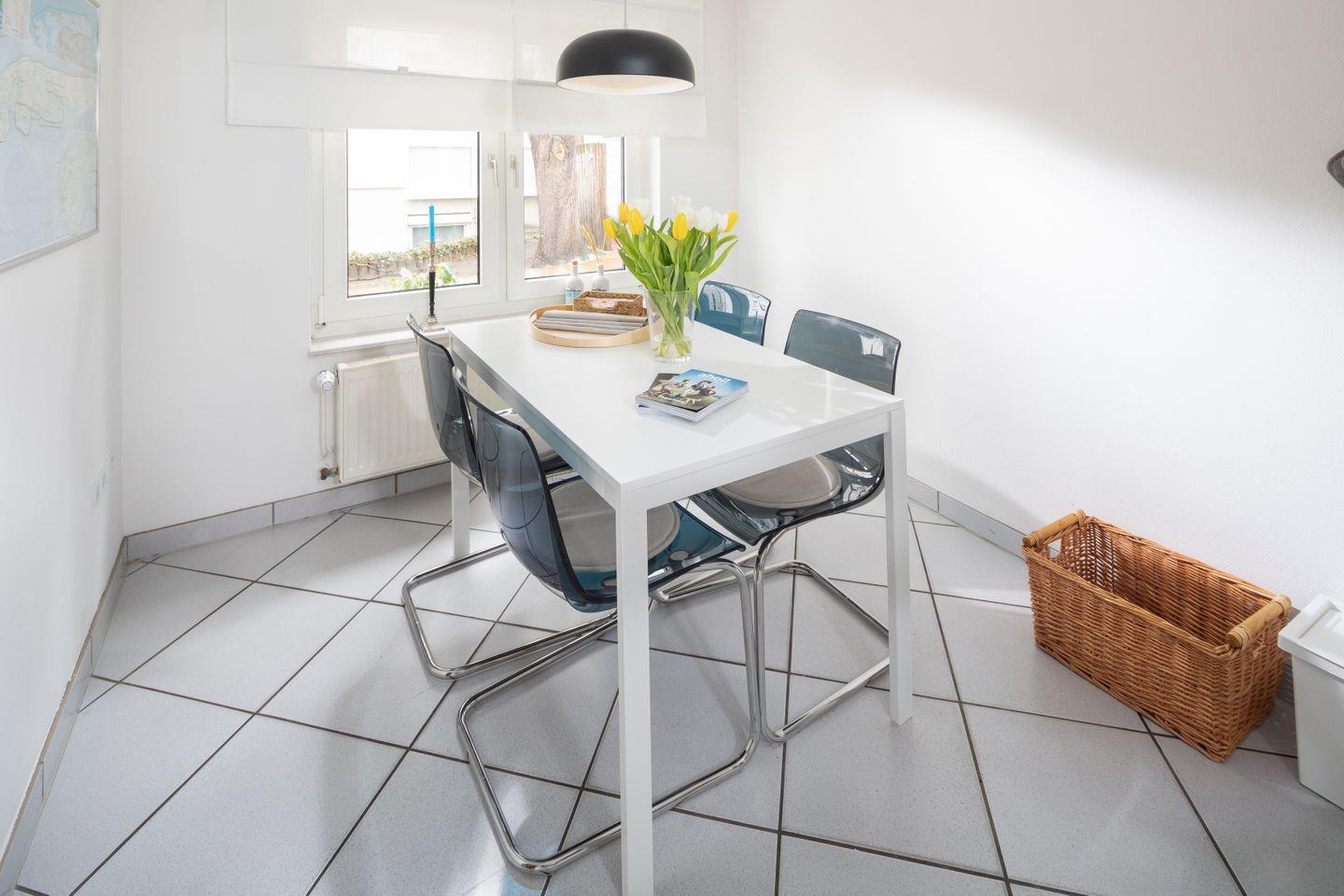 Das neu möblierte Ferienhaus in ruhiger, zentraler Lage verfügt im Erdgeschoss über einen Wohn-Schlafraum (Schlafsofa) mit Kabel-TV und Essecke, eine separate Küche mit Essecke, ein Gäste-WC und eine Terrasse.