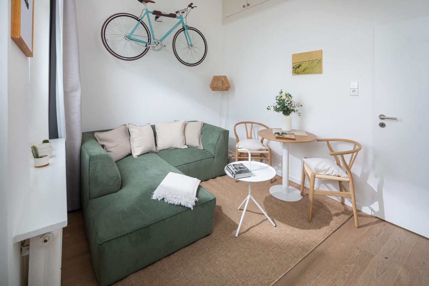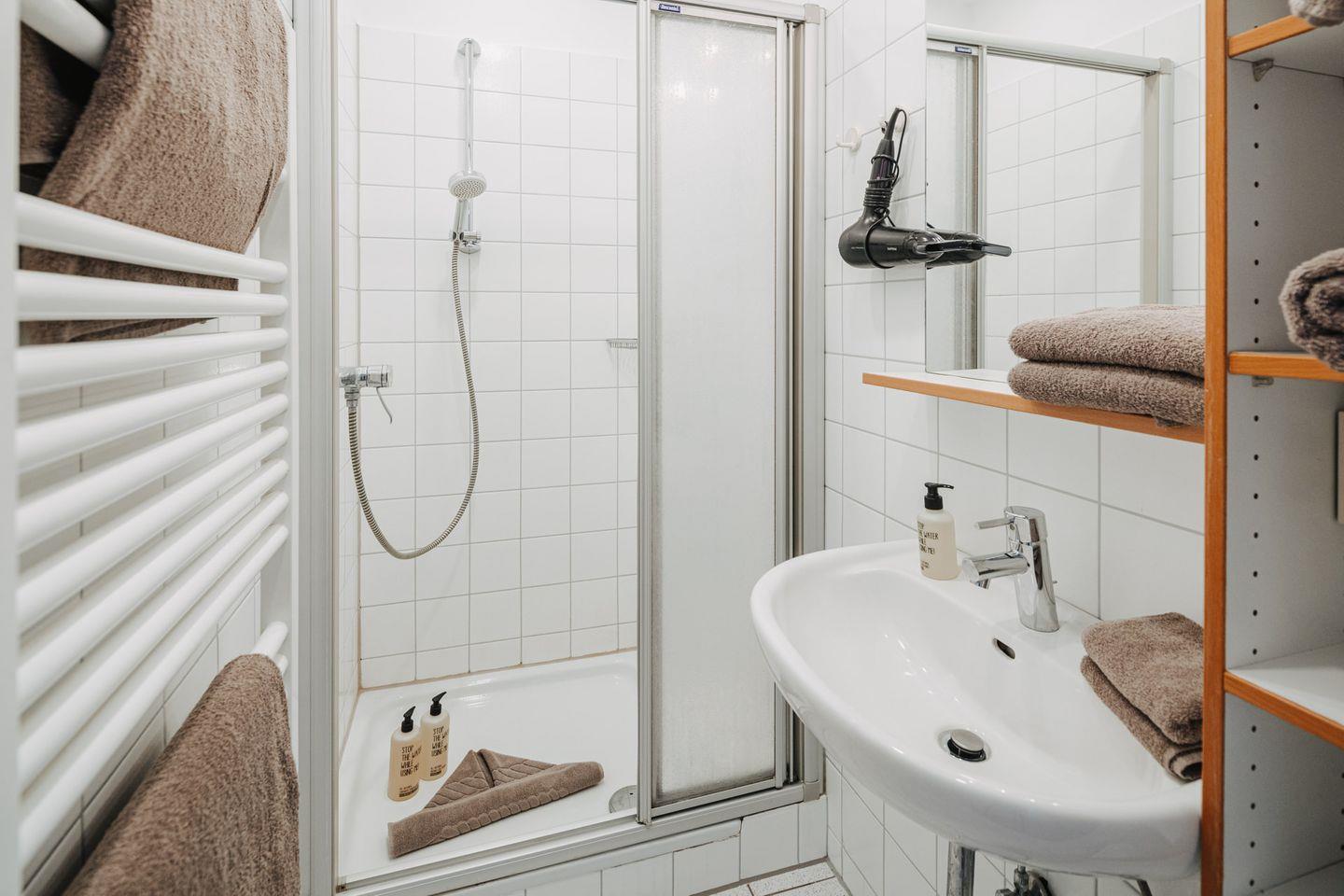 Die Wohnung beeindruckt mit einem Schlafzimmer, ausgestattet mit einem großzügigen Boxspringbett der Größe 180x200cm, das höchsten Schlafkomfort verspricht. Das Badezimmer verfügt über eine Dusche sowie ein Waschbecken, während die separate Toilette zusätzliche Privatsphäre bietet.