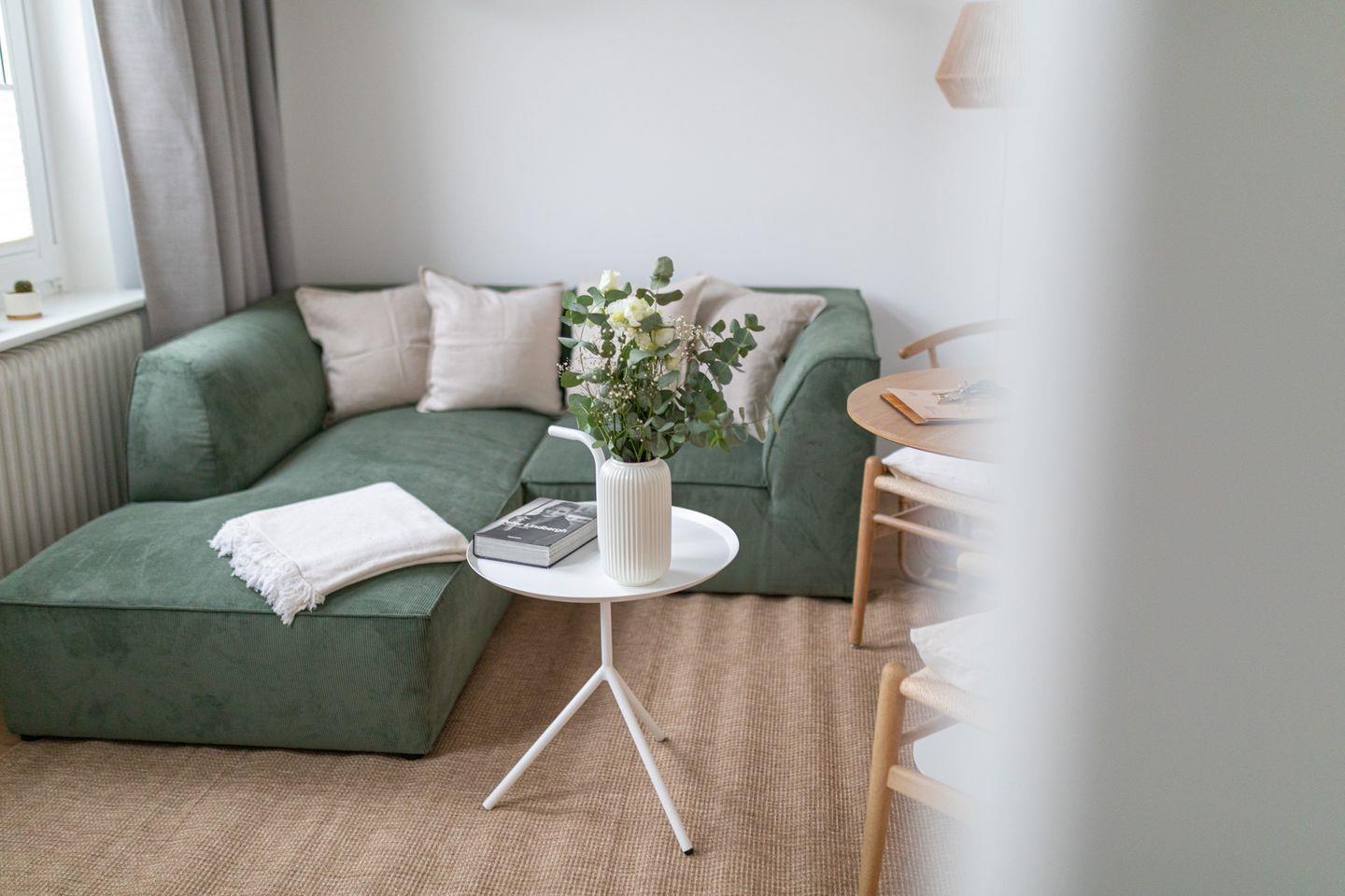 Ein absolutes Highlight dieser Ferienwohnung ist der großzügige Balkon mit exakter südlicher Ausrichtung, der eine Fläche von etwa 20 Quadratmetern umfasst. Hier können Sie auf einer stilvollen Holzsitzgruppe entspannen, die Sonne auf den beiden Liegen genießen und sich unter dem Sonnenschirm zurückziehen. Der skandinavische Einrichtungsstil verleiht der Wohnung eine besondere Wohlfühlatmosphäre.