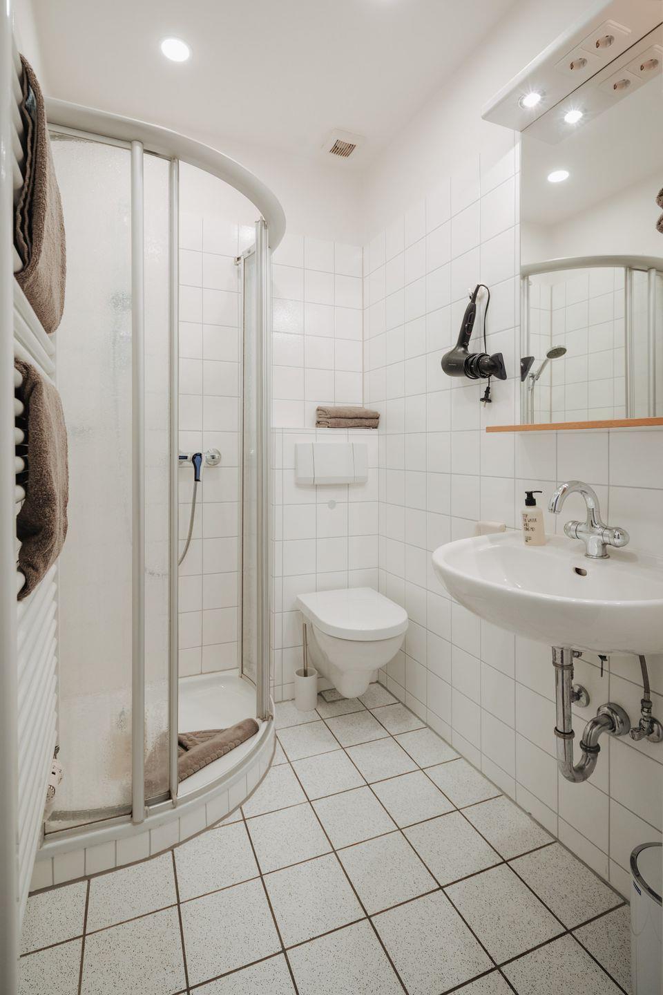 Das Apartment verfügt über ein kombiniertes Wohn- und Schlafzimmer, in dem ein komfortables Boxspringbett der Größe 160x200cm für erholsame Nächte sorgt. Das Badezimmer ist mit einer Dusche, Waschbecken sowie einer Toilette ausgestattet.