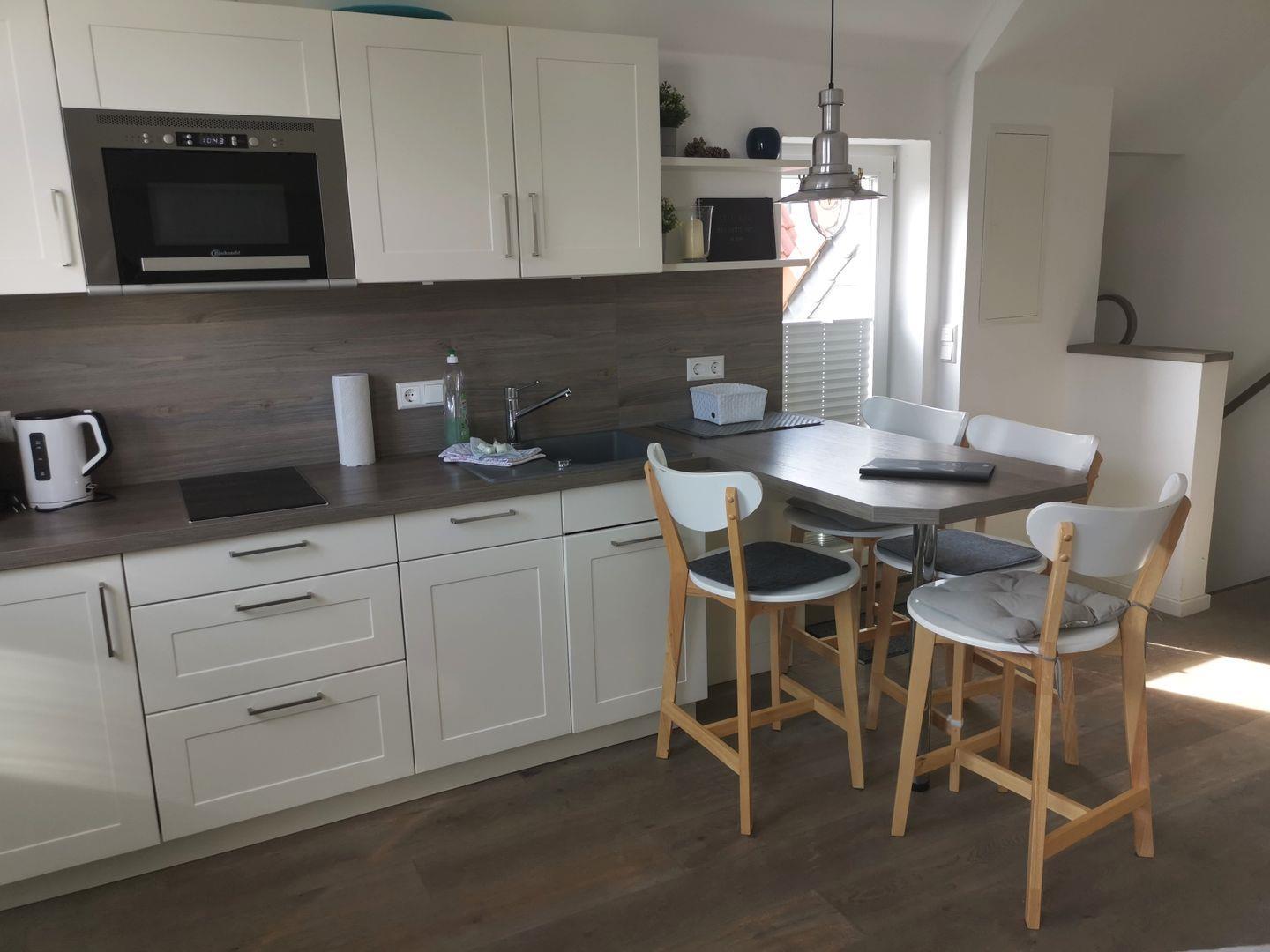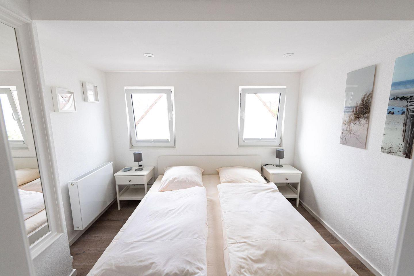Diese helle, gemütliche Ferienwohnung unterm Dach bietet Platz für zwei bis drei Personen. Sie ist mit zwei separaten Schlafzimmern (jeweils mit TV) ausgestattet und verfügt über einen offenen Wohn-Essbereich mit Küchenzeile inkl. Spülmaschine, Esstisch, Sofa und TV. Ein freie WLAN-Anschluss steht ebenfalls zur Verfügung. Im kleinen Bad befinden sich Dusche und WC. Auf dem kleinen, nach Süden ausgerichteten Balkon lassen sich gern auch mal ein paar Sonnenstrahlen bei einer Tasse Kaffee oder einem Glas Wein genießen.