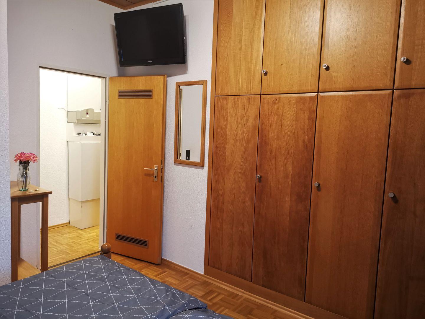 Die großzügige 2-Raum-Ferienwohnung im Stadtzentrum verfügt über einen Wohn-/Schlafraum mit zwei Schrankbetten (für Kinder!), Sofaecke (TV) sowie Küchenzeile (Backofen, Spülmaschine, Ceranfeld) mit Essbereich. Vom Flur erreicht man das separate Schlafzimmer mit Doppelbett (TV) sowie das neu-renovierte Badezimmer mit Dusche/ WC