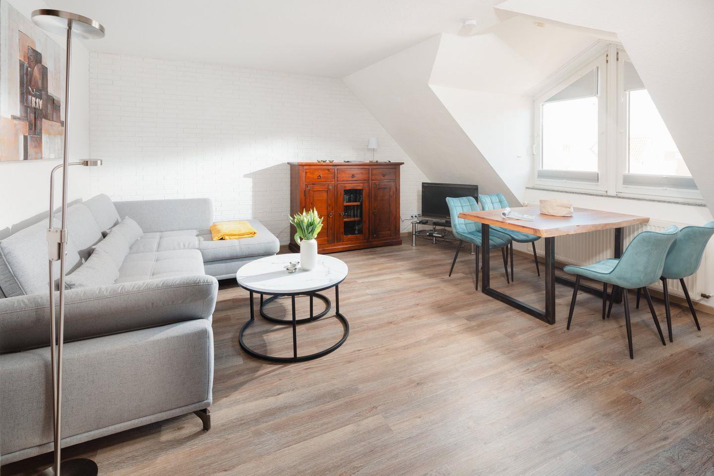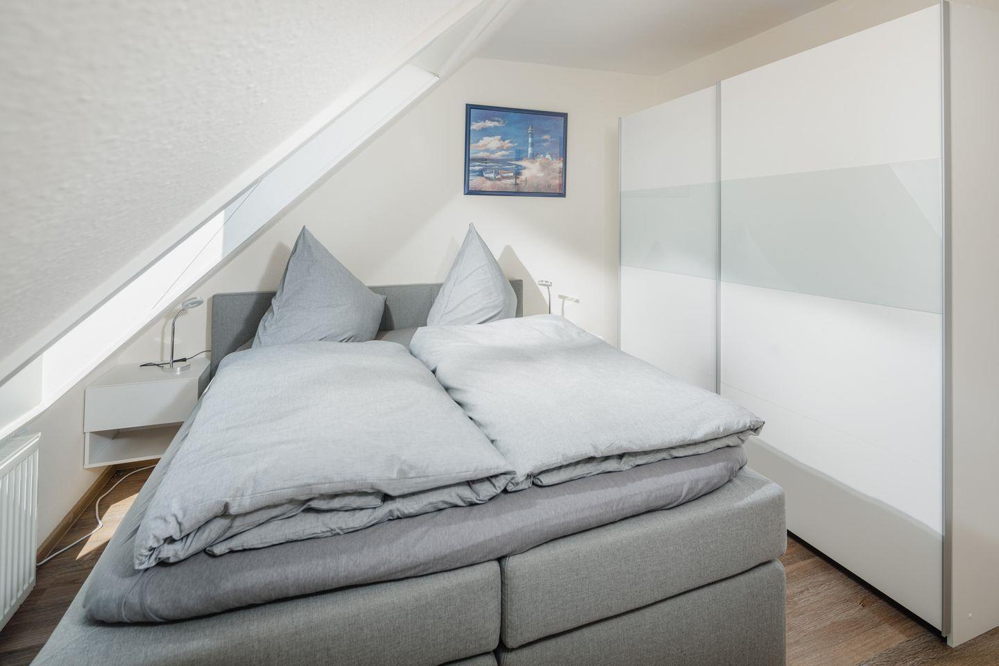 Gemütliche Ferienwohnung auf Norderney mit Boxspringbett und Hund erlaubt, ideal für entspannte Tage am Meer.