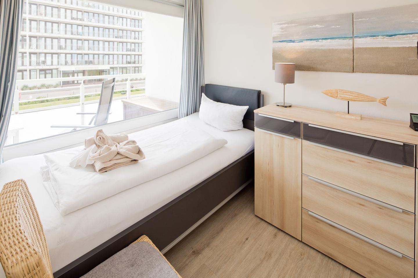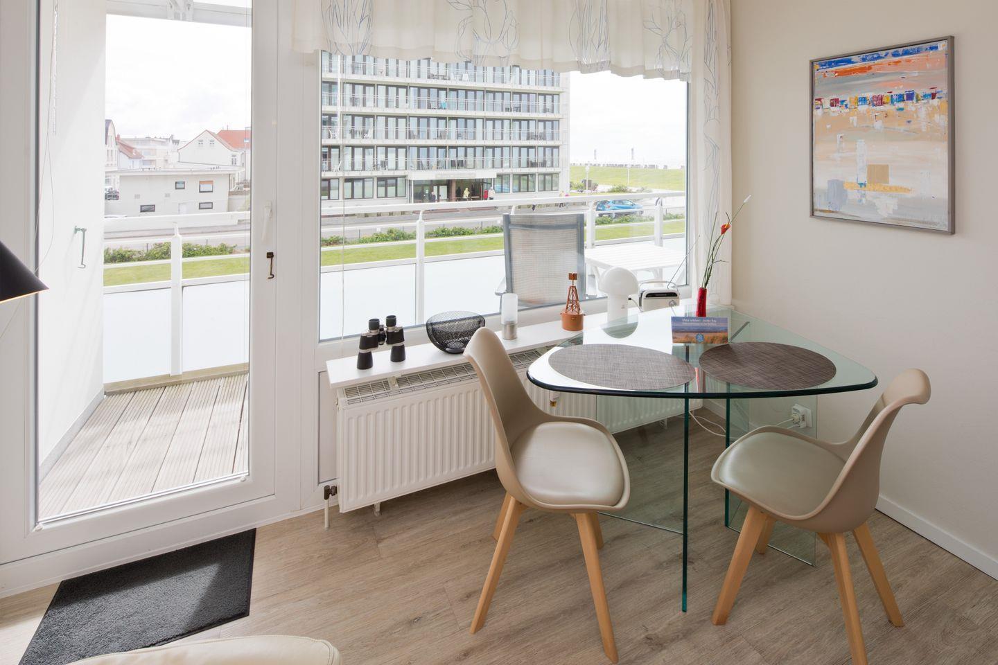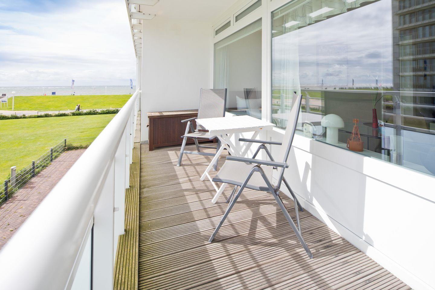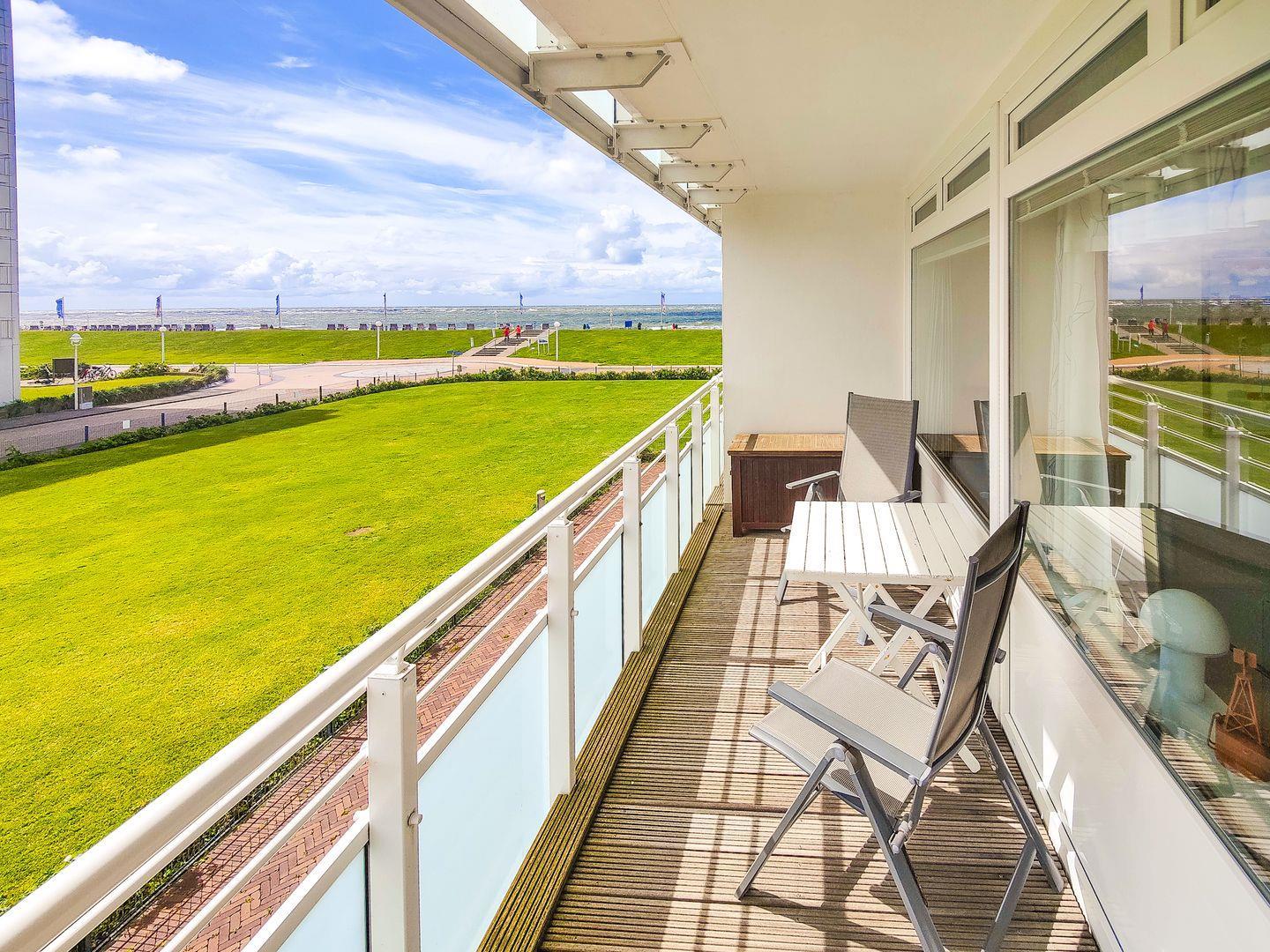Moderne Ferienwohnung mit direktem Meerblick, Balkon und komfortabler Ausstattung in Norderney, ideal für entspannte Tage an der Nordsee.