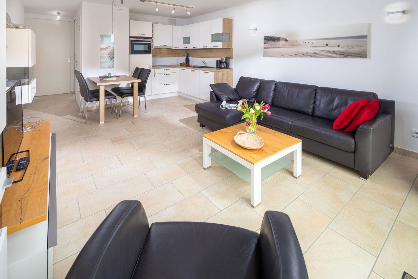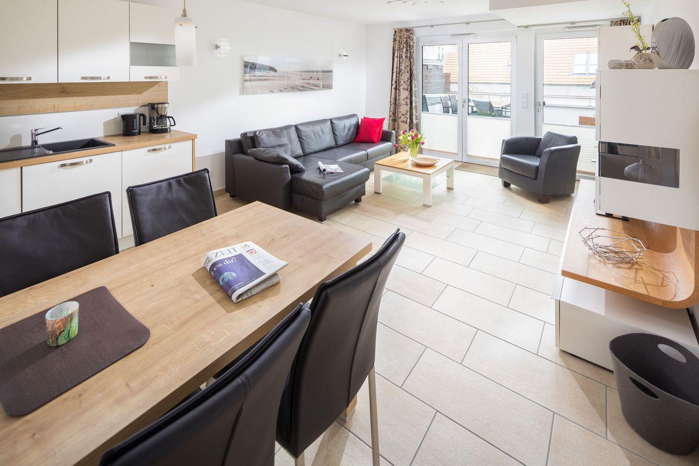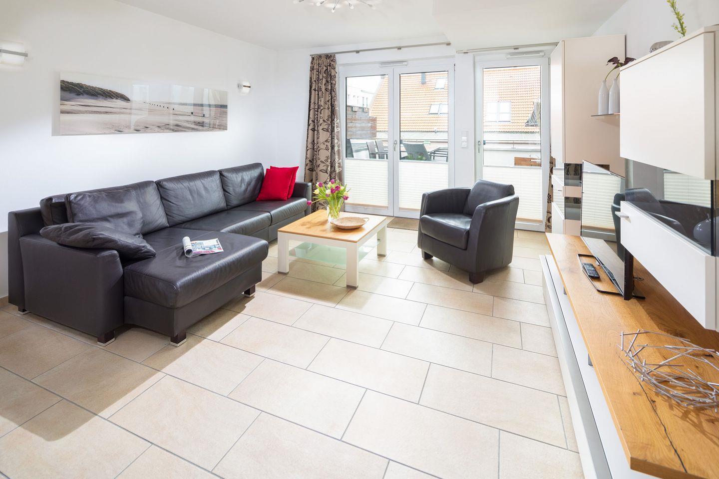 Moderne Ferienwohnung Bremen auf Norderney mit Dachterrasse und Nordseeblick, ideal für Familien und barrierefrei.