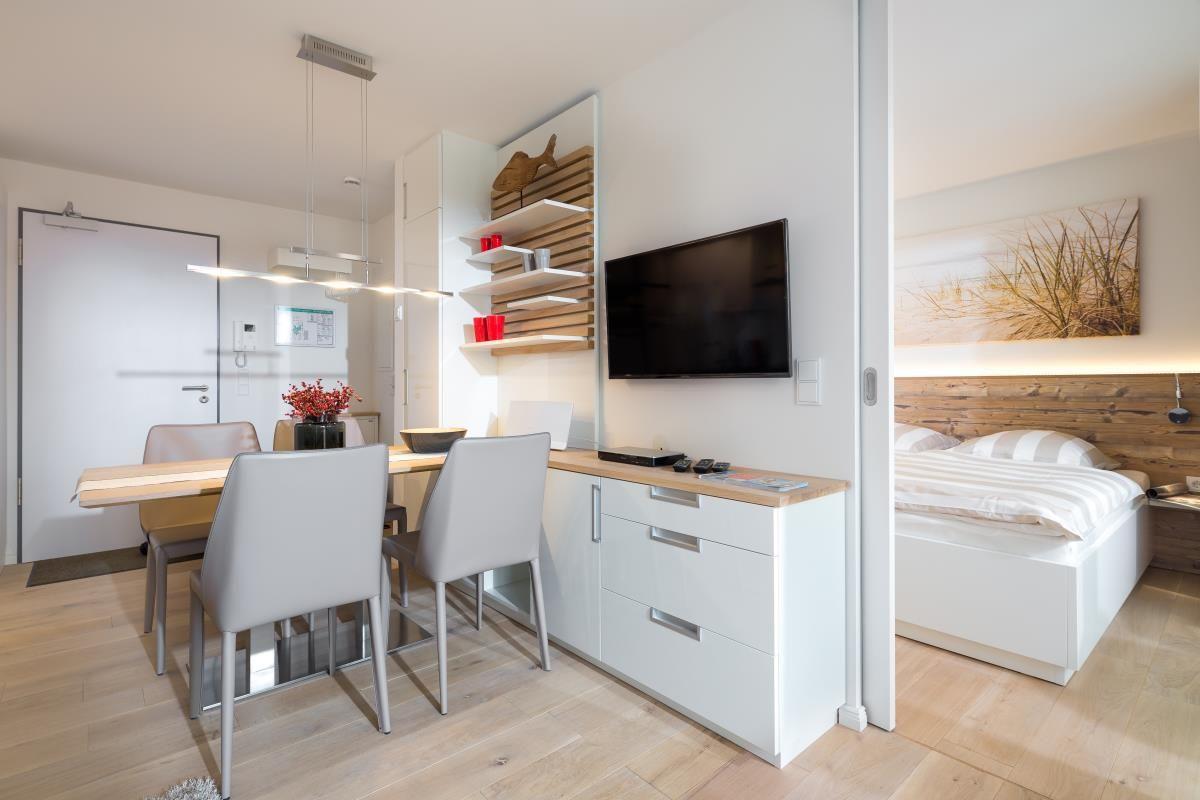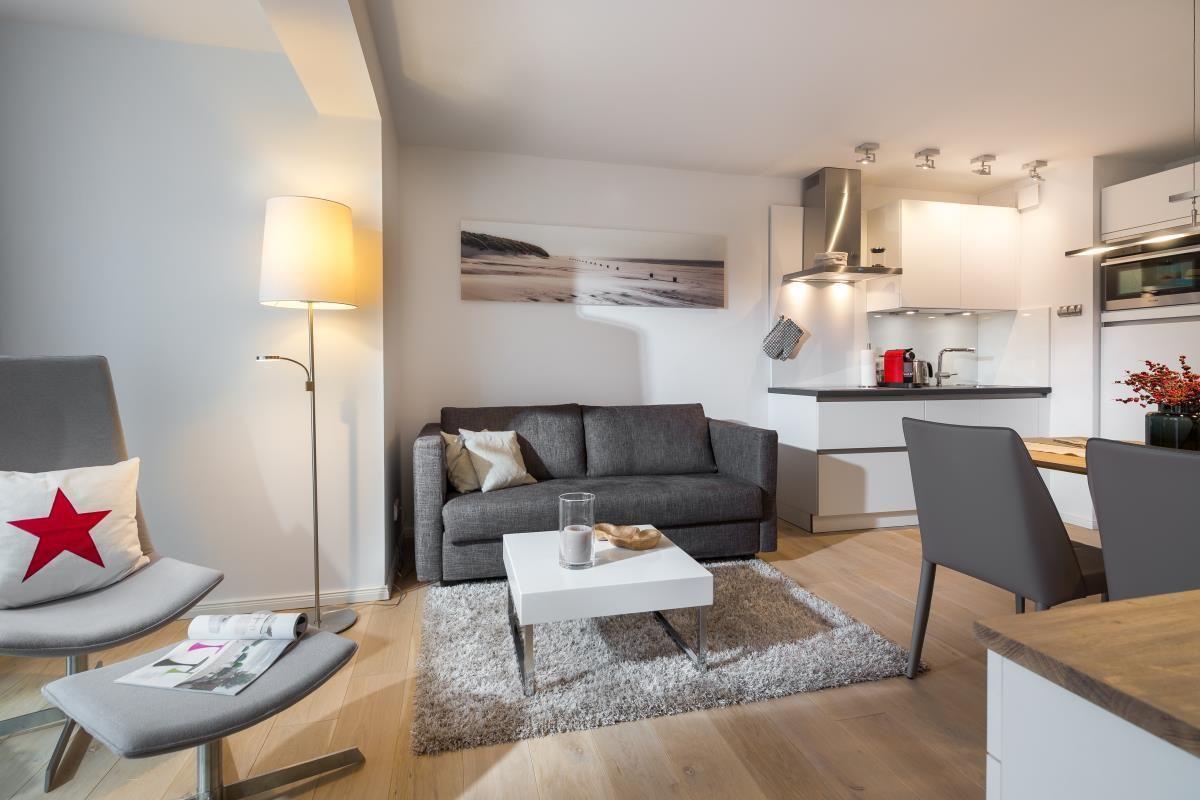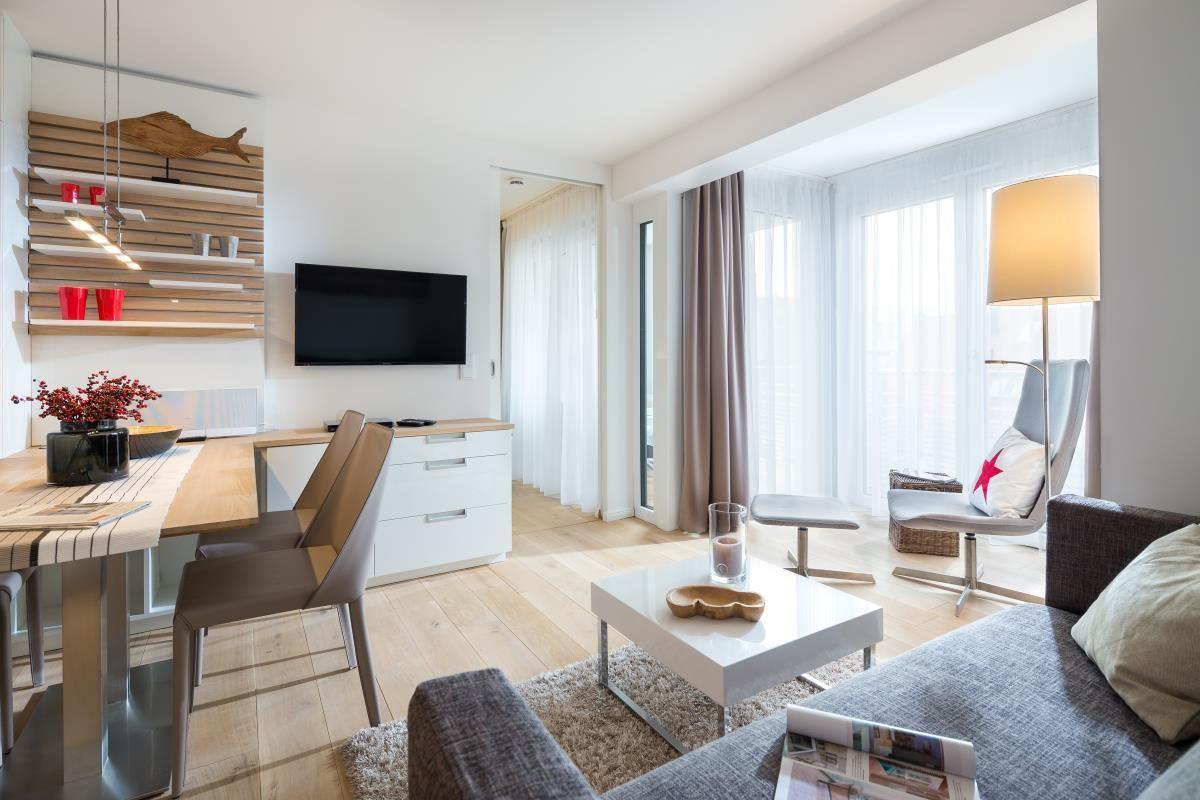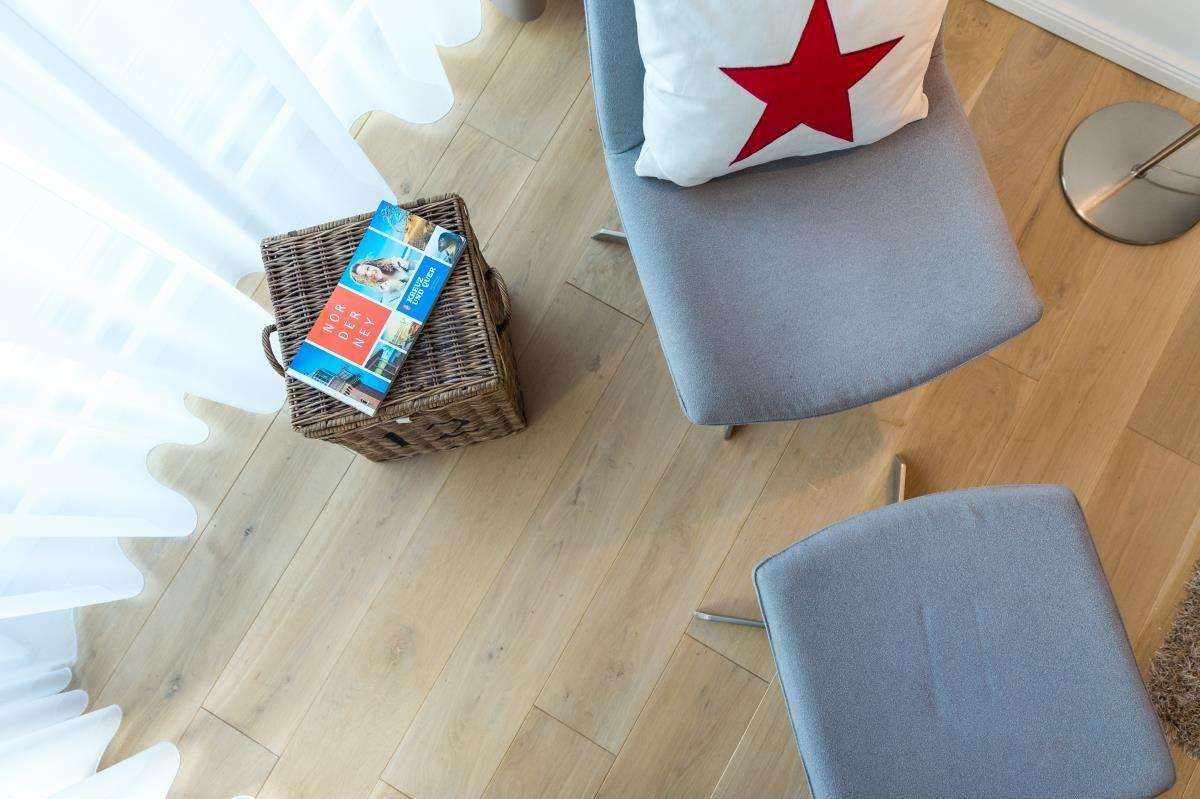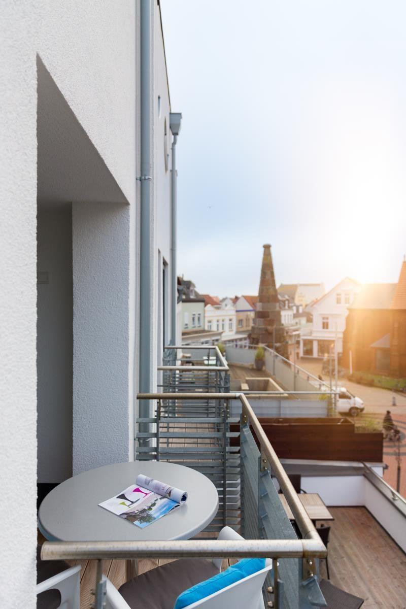 Moderne Ferienwohnung Europa im Schippers Huus mit Balkon und seitlichem Meerblick auf Norderney, nur 200 m vom Strand entfernt.