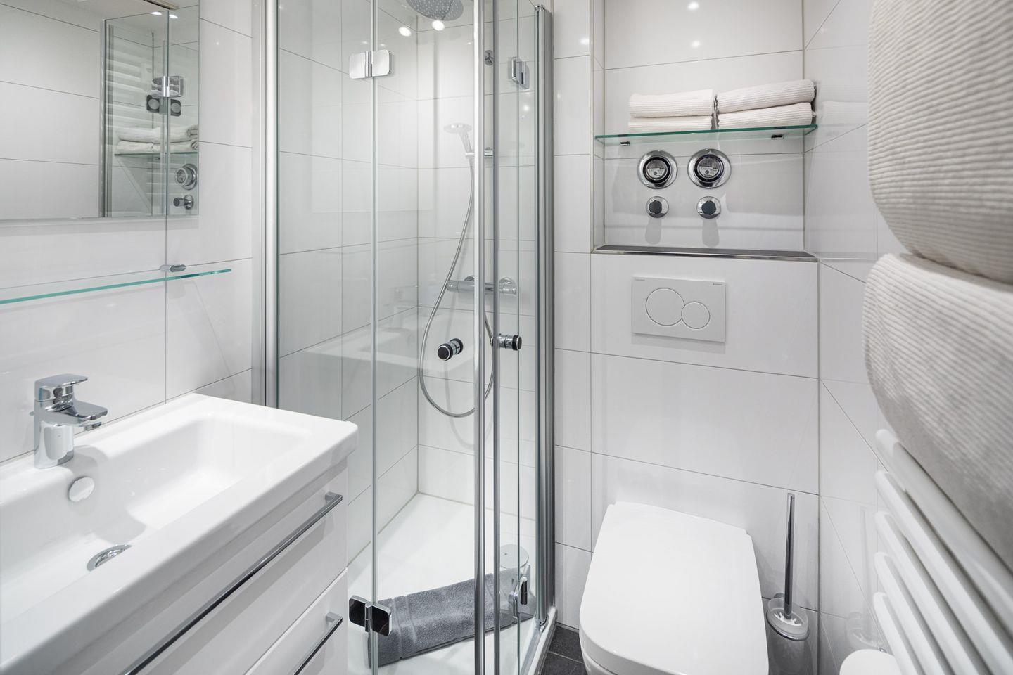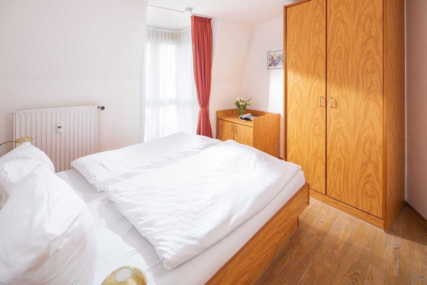 Die Ferienwohnung Kogge 9 ist bequem per Fahrstuhl erreichbar, was insbesondere für Gäste mit Mobilitätseinschränkungen eine praktische Annehmlichkeit darstellt. Die Unterkunft präsentiert sich mit einem separaten Schlafzimmer, ausgestattet mit einem gemütlichen Doppelbett für erholsame Nächte. Das Badezimmer bietet WC und Dusche mit flachem Einstieg, was den Komfort erhöht.