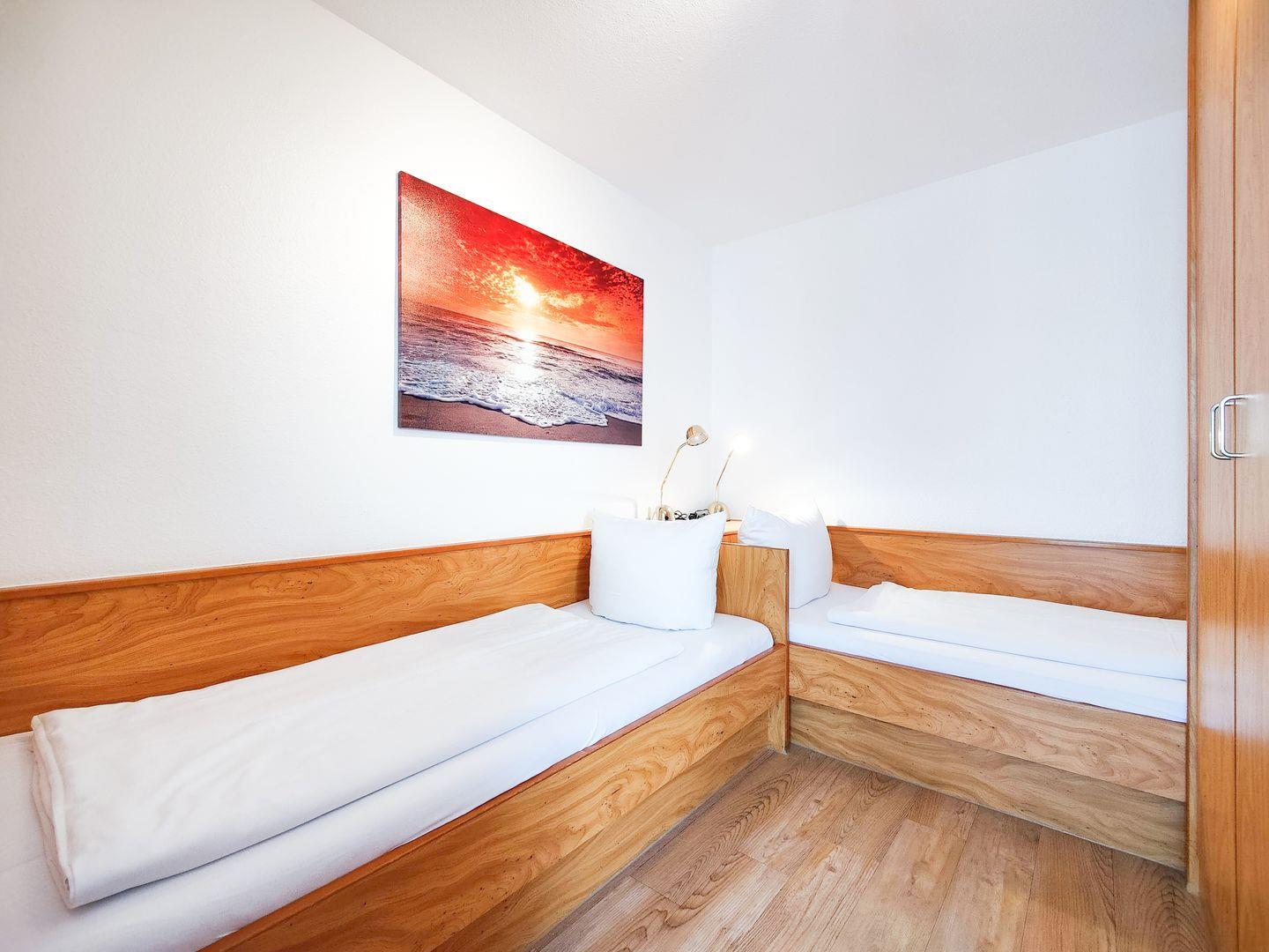 Sie verfügt über zwei separate Schlafzimmer, eines mit Doppelbett, das andere mit zwei Einzelbetten, sowei über ein Badezimmer mit WC und Dusche mit flachem Einstieg. Im Wohnraum befindet sich der Essplatz und eine gute ausgestattete Küche. Weiter gibt es ein Sofa, sowei zwei Sessel, kostenfreies WLAN, DVD-Player und Flachbild TV.