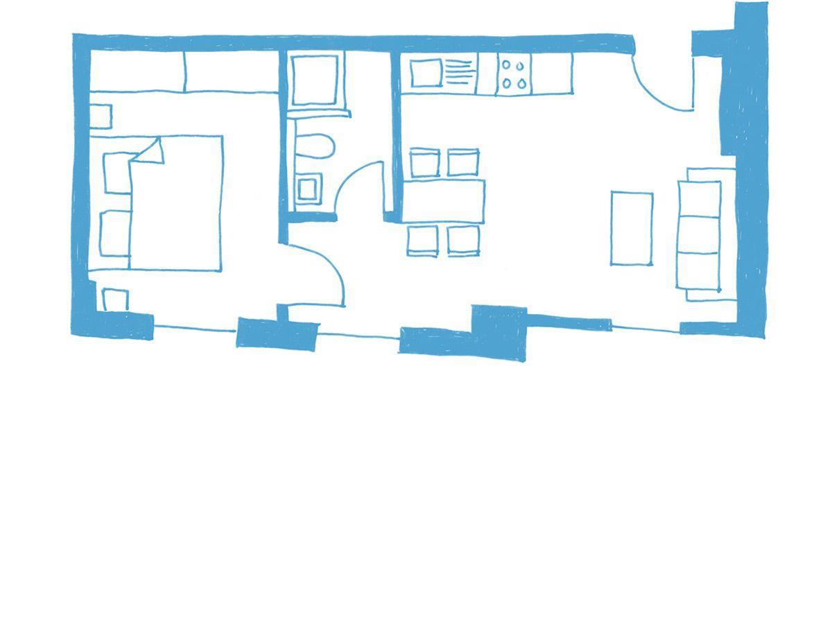 Die offene Küche begeistert nicht nur durch ihre klaren Linien, sondern auch durch ihre moderne Ausstattung, einschließlich einer Spülmaschine. Hier können Sie Ihre kulinarischen Vorlieben nach Herzenslust ausleben. Die klaren Linien setzen sich im gesamten Design der Wohnung fort und schaffen eine verbindliche Atmosphäre, die Tradition und Moderne geschickt miteinander vereint.