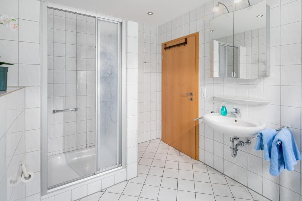 Das großzügige Ferienhaus verfügt über zwei separate Schlafzimmer mit Doppelbetten im Erdgeschoss, große voll ausgestattete Küche (Spülmaschine) mit Essbereich für 8 Personen, großes Badezimmer mit Dusche/ WC sowie Wirtschaftsraum mit Waschmaschine & Trockner (Münzautomaten). In der 1. Etage befindet sich ein weiteres Schlafzimmer mit Doppelbett, Badezimmer mit Dusche/ WC sowie Wohnbereich mit 2 Sitzgruppen (TV) und Schlafsofa (160cm breit). Von hier haben Sie Zugang zur großen Sonnenterrasse mit Südwestlage.