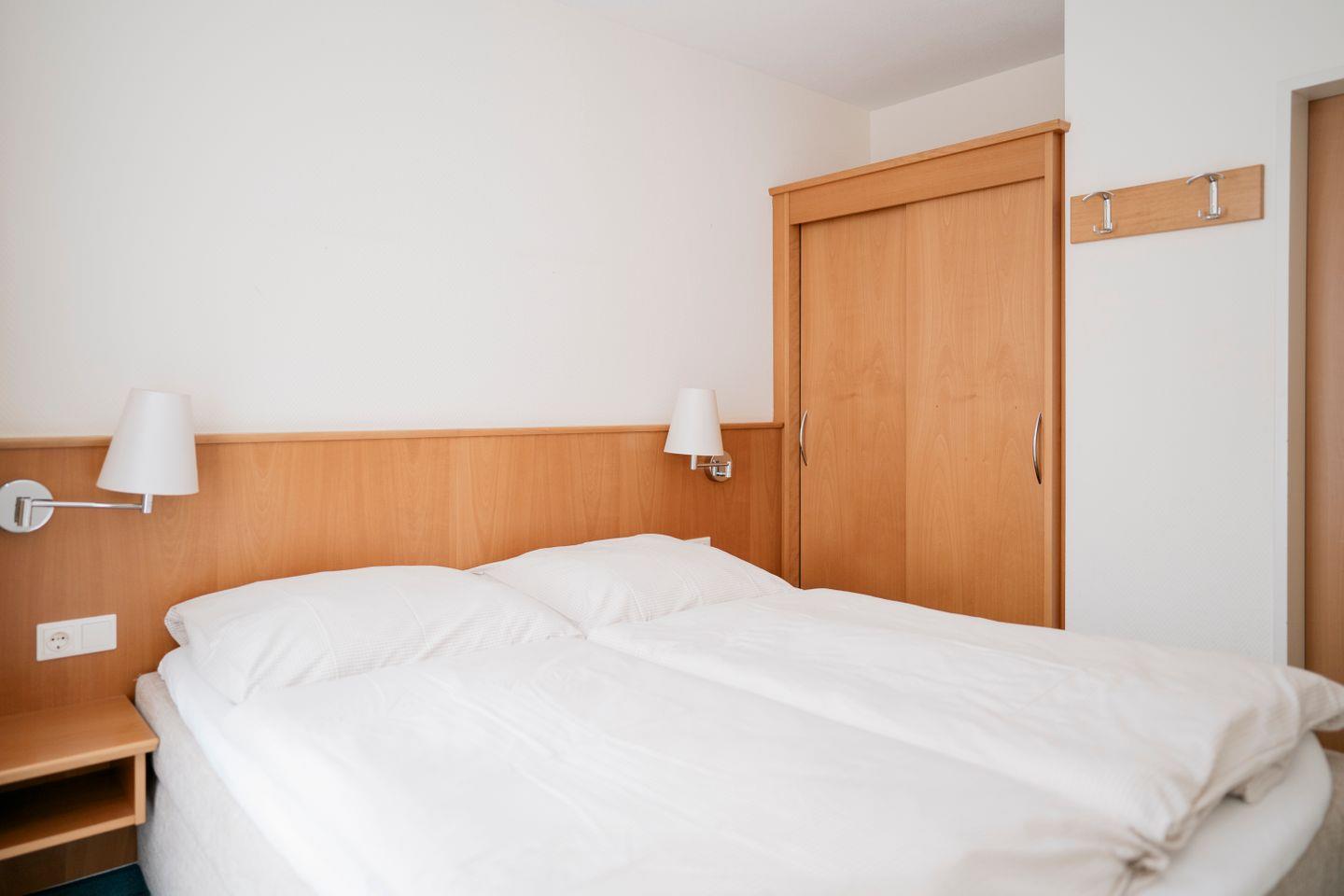 Im separaten Schlafraum befindet sich ein Doppelbett. Im Schlafzimmer ist es leider nicht möglich, ein Kinderbett hinzustellen.
