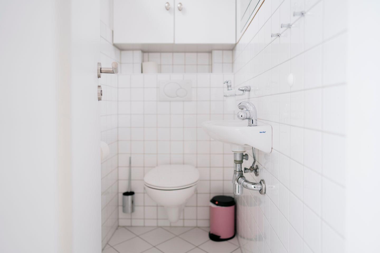 Im Eingangsbereich befindet sich eine großzügige Diele mit Garderobe und einem kleinen Abstellraum. Ein separates Gäste-WC im Erdgeschoss sorgt für zusätzlichen Komfort. Über eine helle Treppe gelangen Sie ins Obergeschoss.