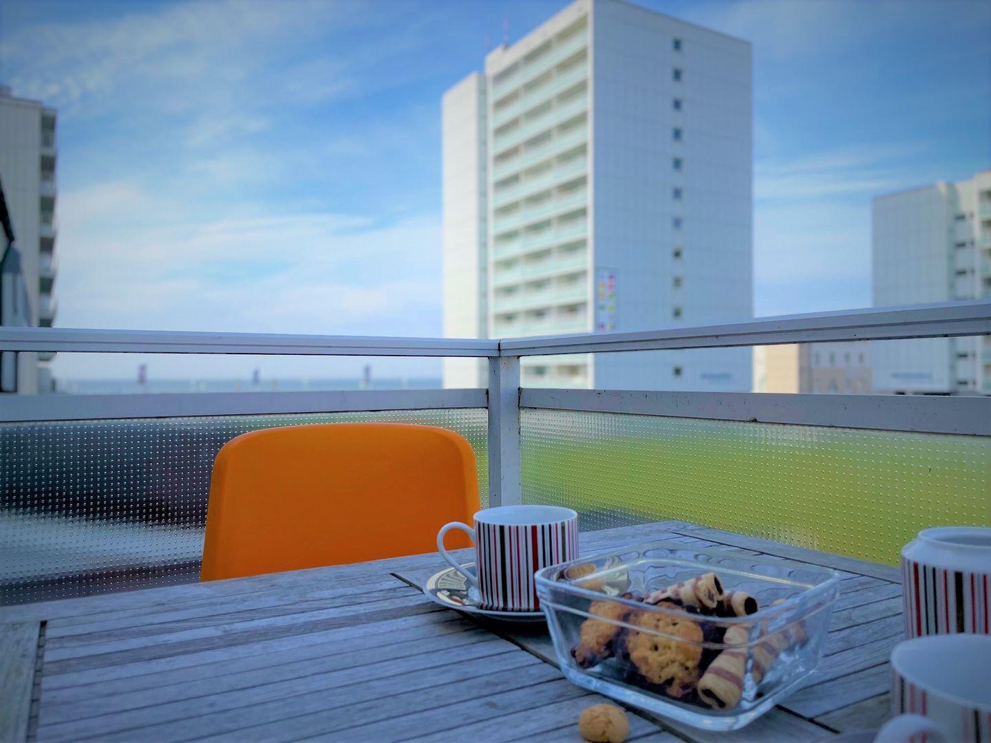 Moderne Ferienwohnung mit Balkon und seitlichem Meerblick auf Norderney.