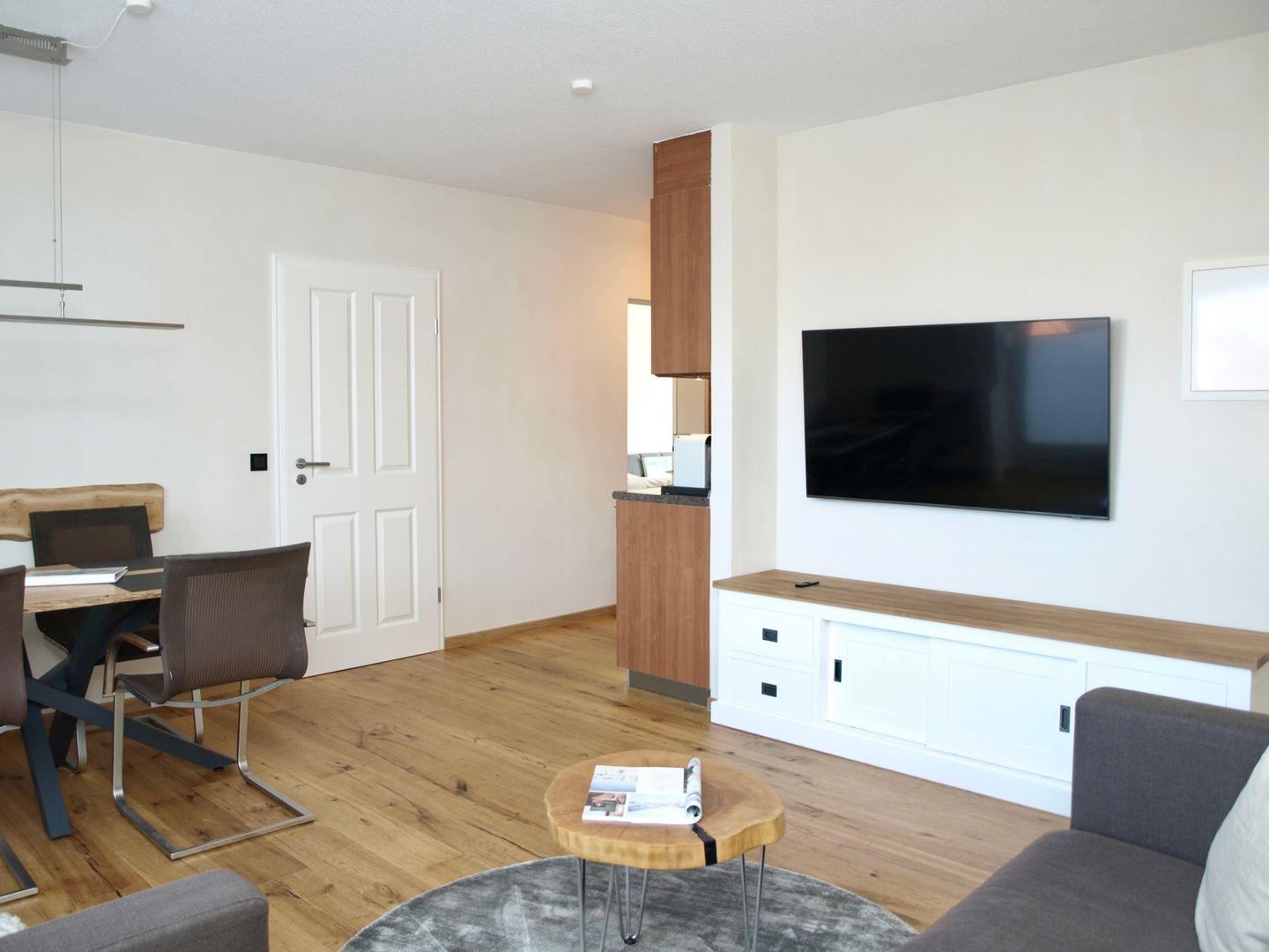 Sie verfügt über einen großen Wohnraum, zwei separaten Schlafzimmern, eins mit Doppelbett (1,80x2,00m) und das andere verfügt über ein Doppelbett (1,40x2,00m) sowie DU/WC und einer kleine Diele.