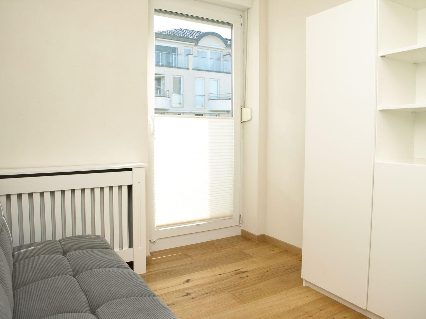 Das zweite Doppelzimmer ist mit einem Doppelbett (1,40 x 2,00m), einem Sofa welches auf Anfrage als Schlafsofa genutzt werden kann sowie einem Regal ausgestattet.