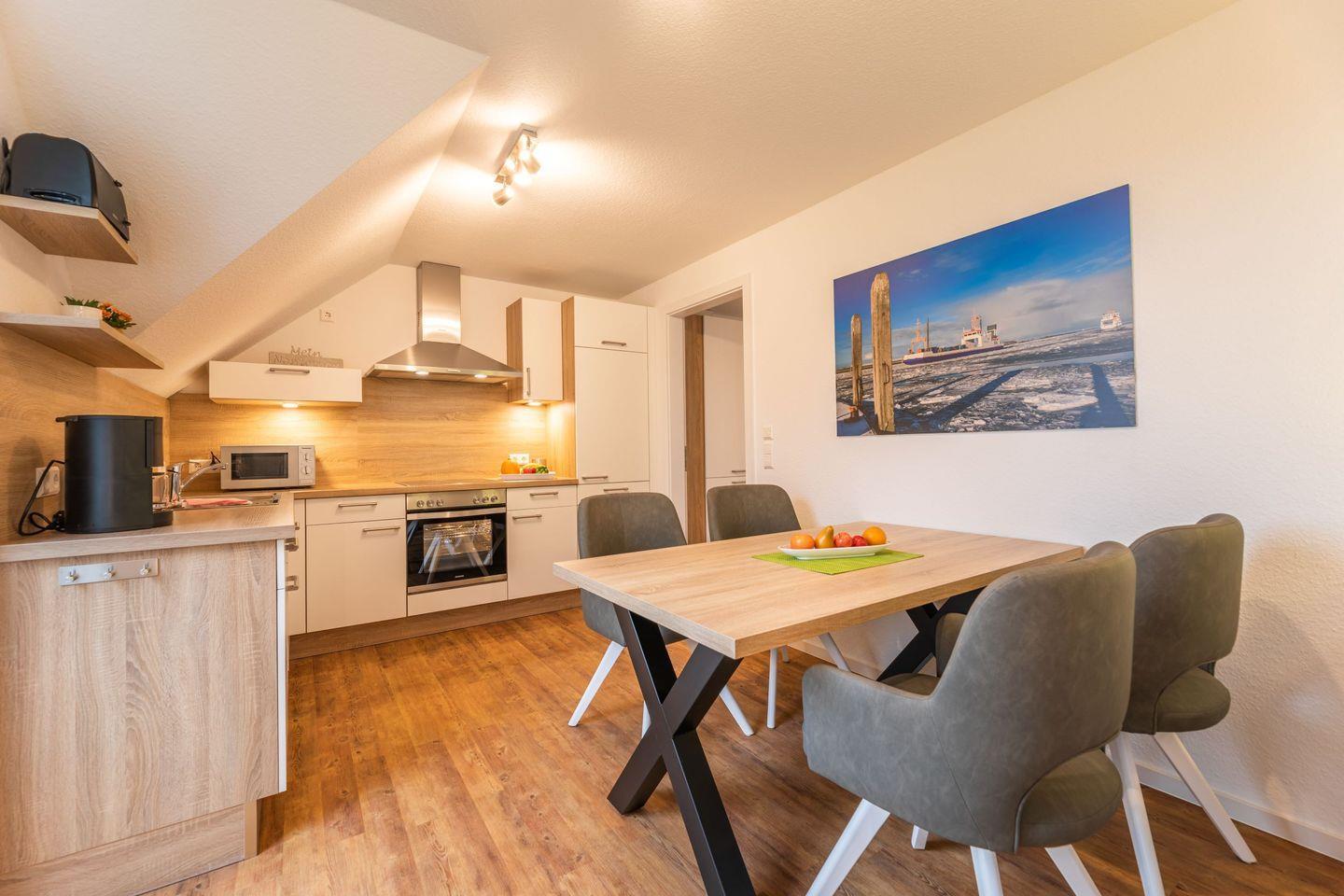 Geschmackvoll eingerichtete Ferienwohnung auf Norderney mit 2 Balkonen und moderner Küche, nur 500 m vom Strand entfernt.