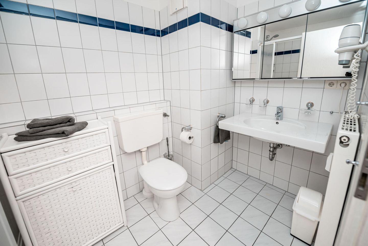Im Souterrain befinden sich das separate Schlafzimmer und das moderne Badezimmer mit Dusche, WC und Waschtrockner sowie ein Abstellraum.
