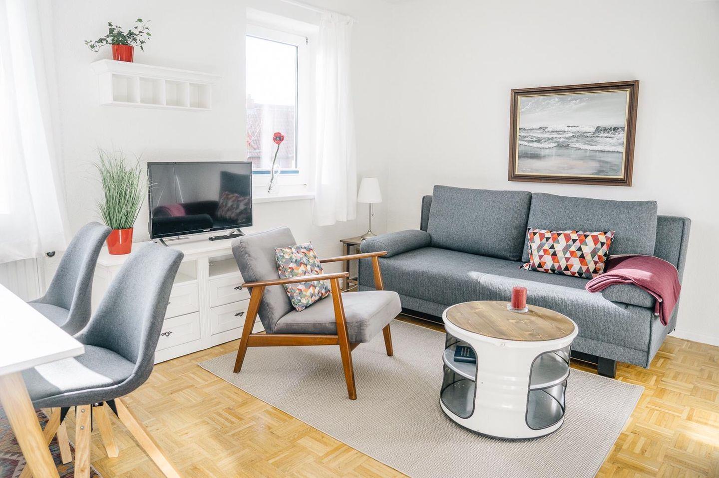 Helle 2-Raum-Wohnung auf Norderney mit komfortabler Ausstattung und ruhiger Lage, ideal für erholsame Tage am Meer.