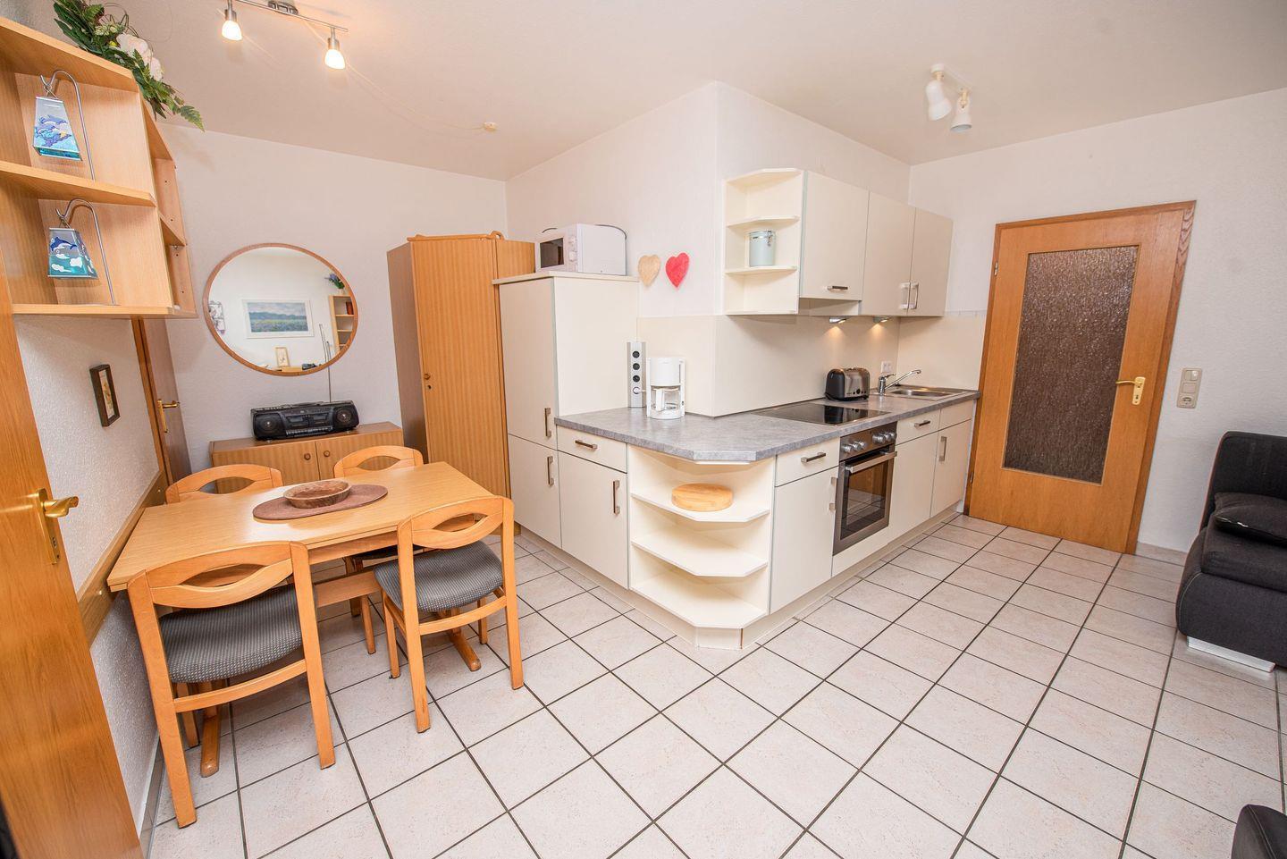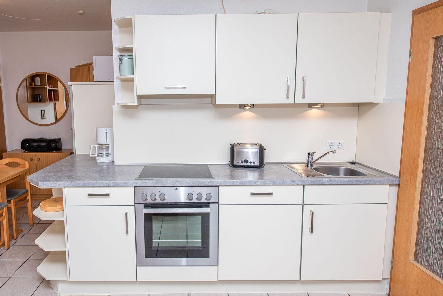 Die offene Wohnküche ist mit allen wichtigen Geräten ausgestattet: