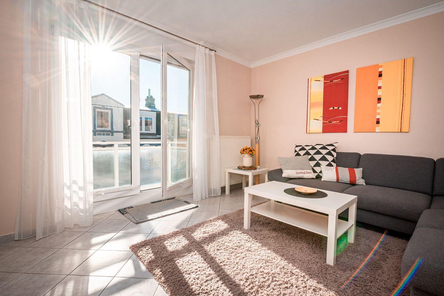 Luxuriöse 2-Zimmer-Ferienwohnung auf Norderney mit Balkon, moderner Ausstattung und Nähe zum Strand.