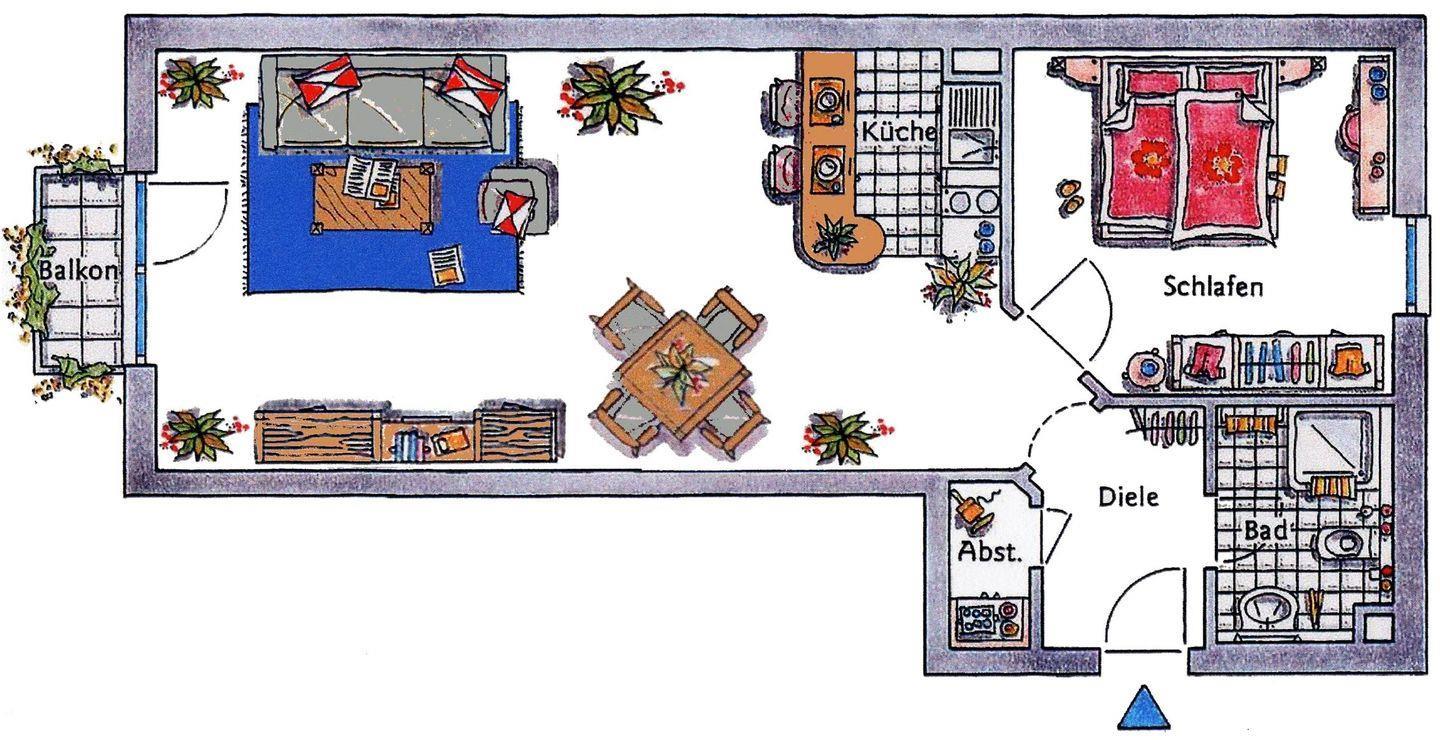 Eine 2-Raum-Wohnung, die man sich für den Urlaub wünscht.