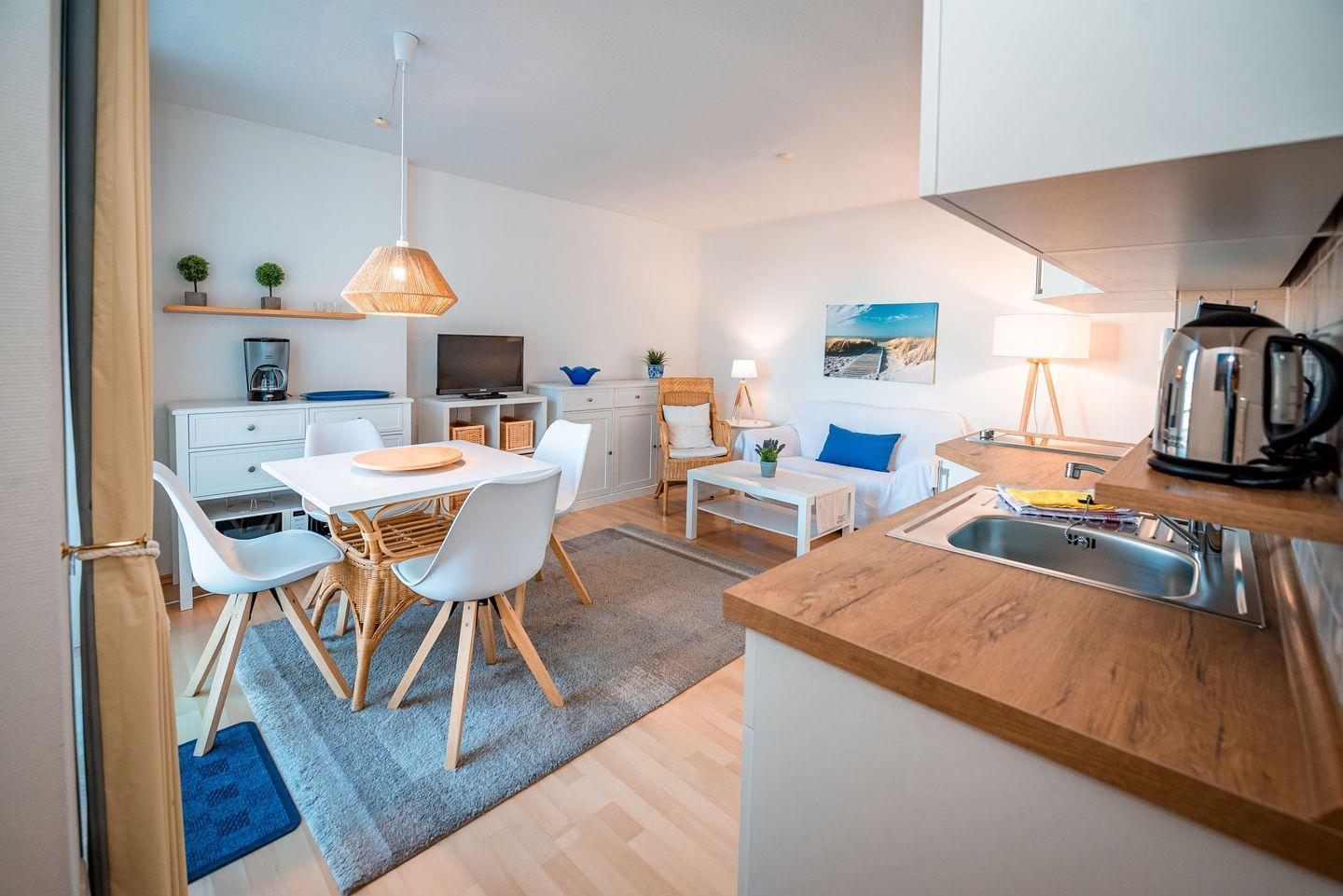 Die freundlich eingerichtete 3-Zimmerwohnung bietet mit 55m² Platz für bis zu 4 Personen. Ein Balkon zur ruhigen Rückseite des Hauses rundet die Wohnung für einen Idealen Traumurlaub ab.