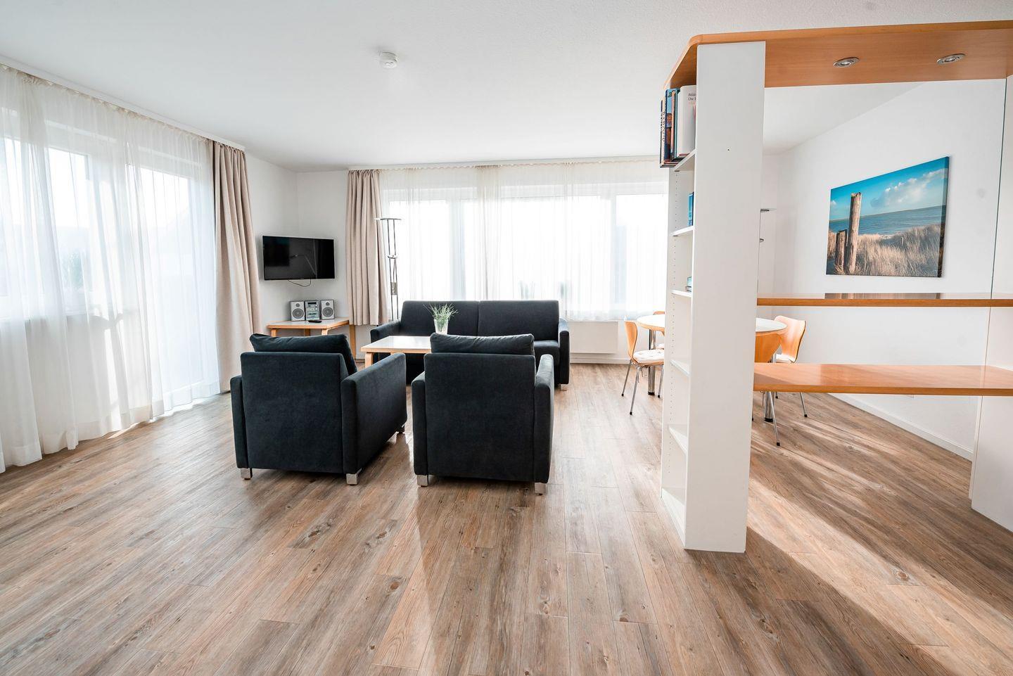 Die Wohnung Seeschwalbe mit ca. 58qm bietet Platz für bis zu 4 Personen. Sie bietet nicht nur Komfort, sondern auch die Möglichkeit, Ihren Hund mitzubringen. Der großzügige Wohnbereich lädt zum entspannen ein. Von hier aus gelangt man direkt in den eigenen Garten mit Süd-Terrasse, hochwertigem Gartengestühl und einem gemütlichen Strandkorb.