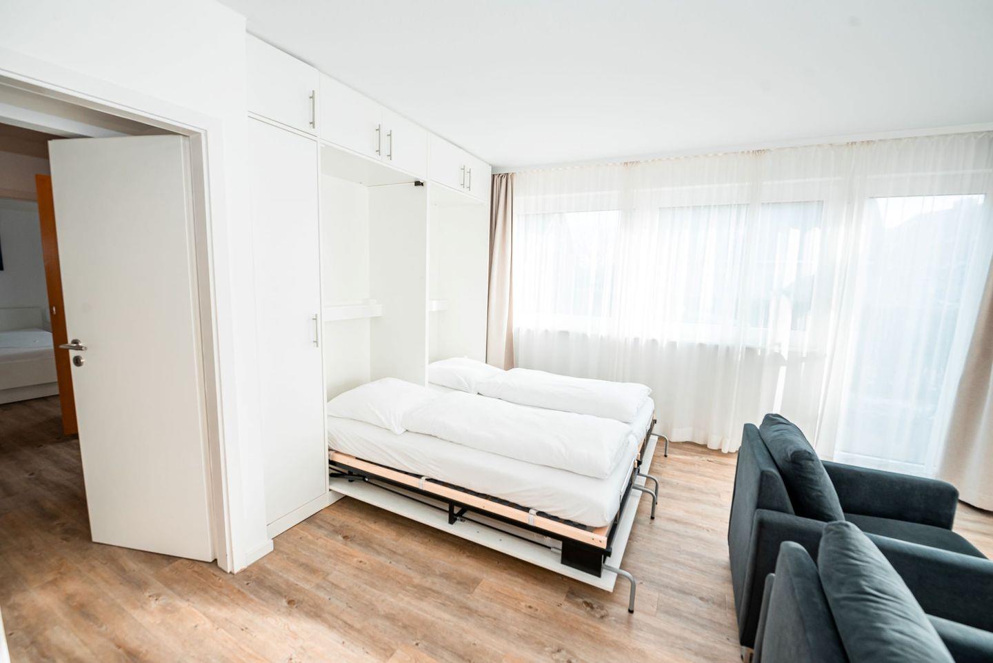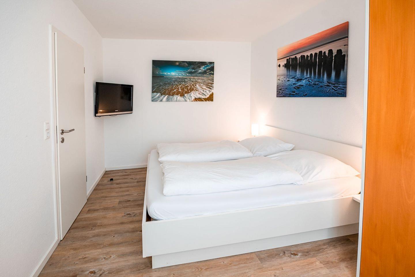 Das Schlafzimmer verfügt über ein gemütliches Doppelbett und ist mit einem Flachbildfernseher ausgestattet. Des Weiteren erwarten Sie im gemütlichen Wohnzimmer zwei Schrankbetten, welche als Schlafmöglichkeit dienen.