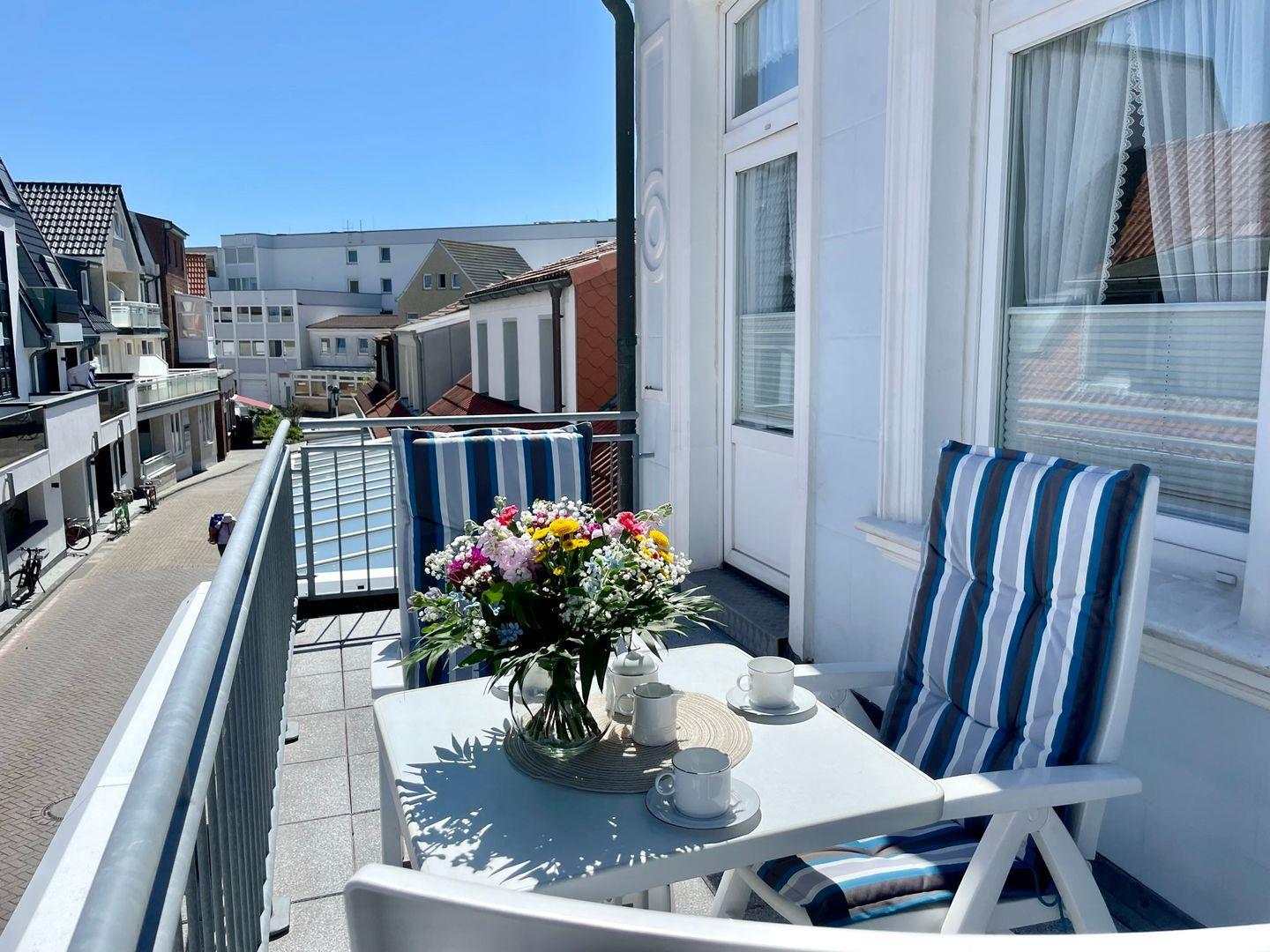 Ruhige Ferienwohnung mit Balkon nahe Weststrand in Norderney, ideal für erholsame Tage zu zweit oder zu dritt.