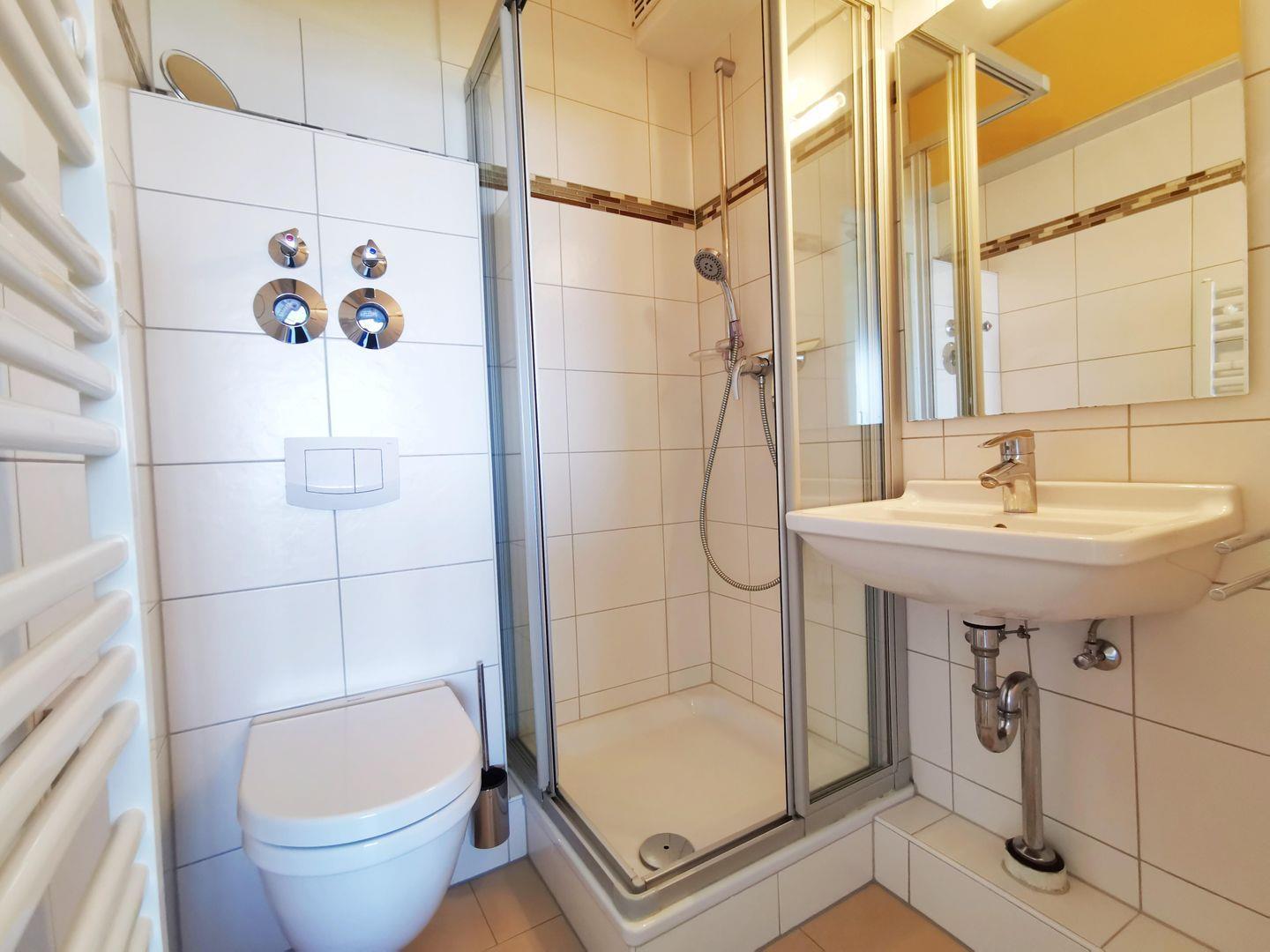 Das moderne Badezimmer ist mit Dusche und WC ausgestattet. Für zusätzlichen Komfort sorgen ein Fahrstuhl im Haus sowie ein kostenfreier WLAN-Zugang in der Wohnung.