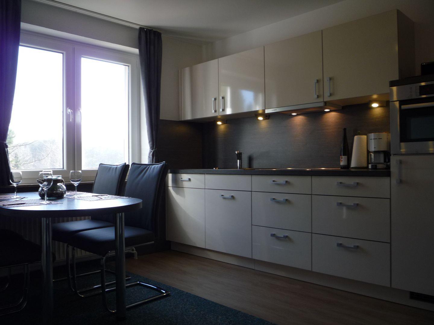 Wohnraum mit Küchenzeile ( ausgestattet mit 4-Platten-Herd, Backofen, Mikrowelle, Kühlschrank, Kaffeemaschine,