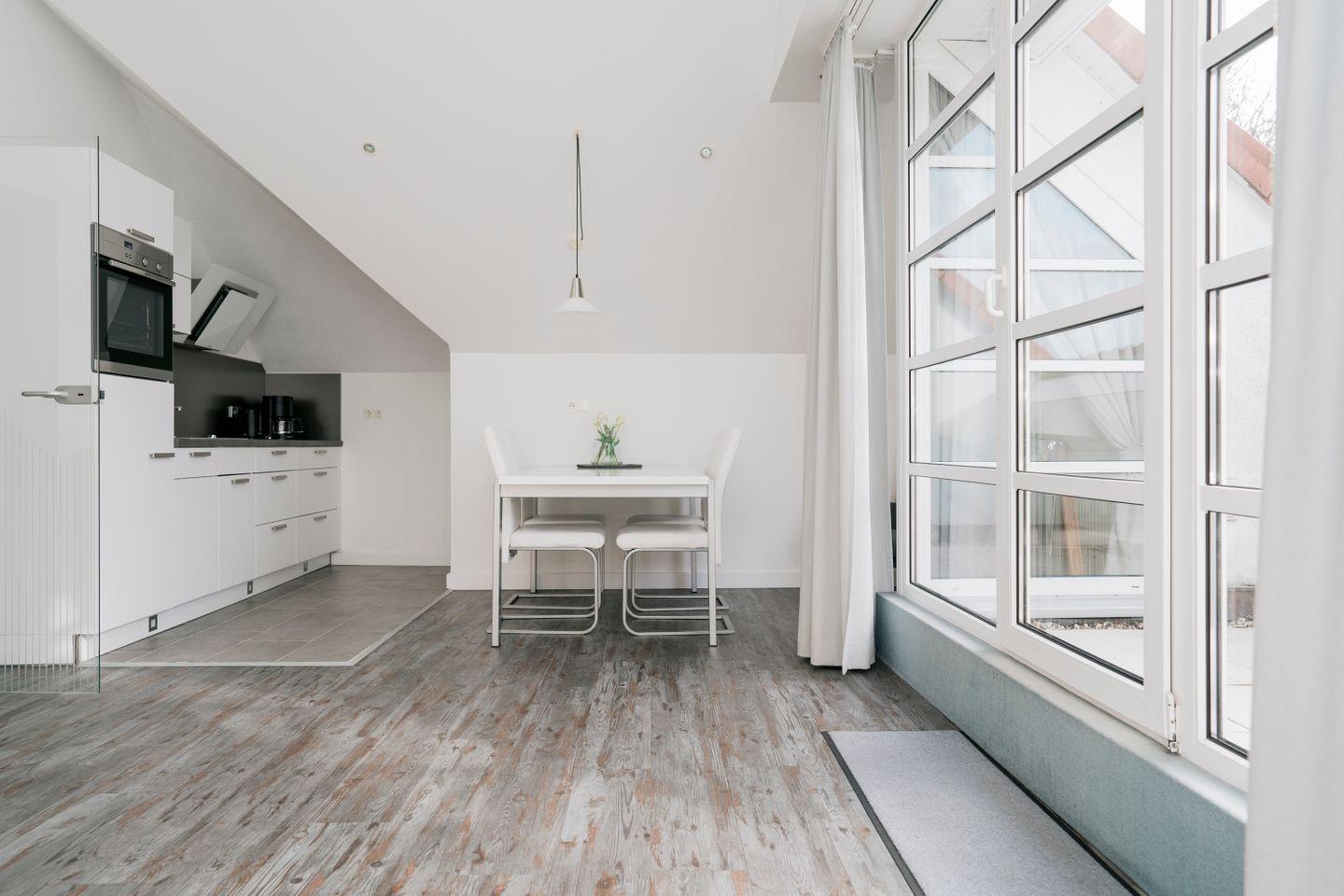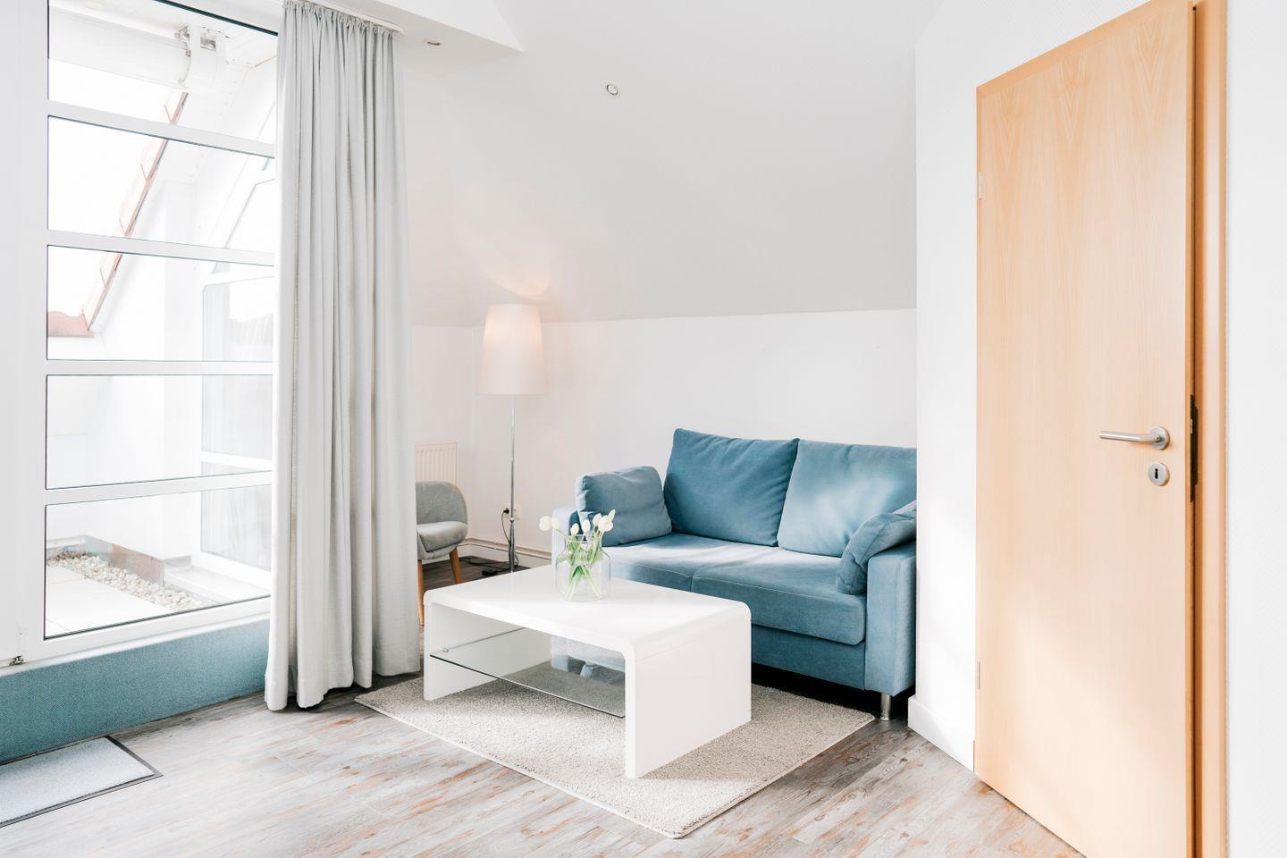 Dieses komfortable Feriendomizil mit teilweise schrägen Wänden verfügt über ein geräumiges und gemütlich eingerichtetes Wohnzimmer sowie über einen separaten Schlafraum.
