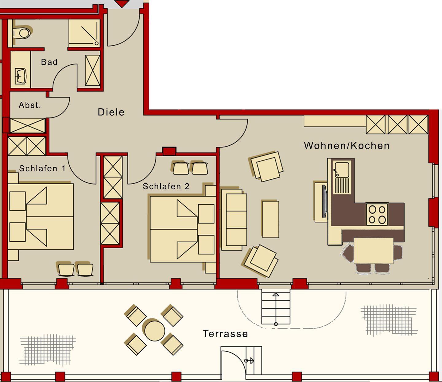Komfortable 3-Raum-Wohnung auf Norderney mit Strandnähe und hochwertiger Ausstattung für bis zu 4 Personen.