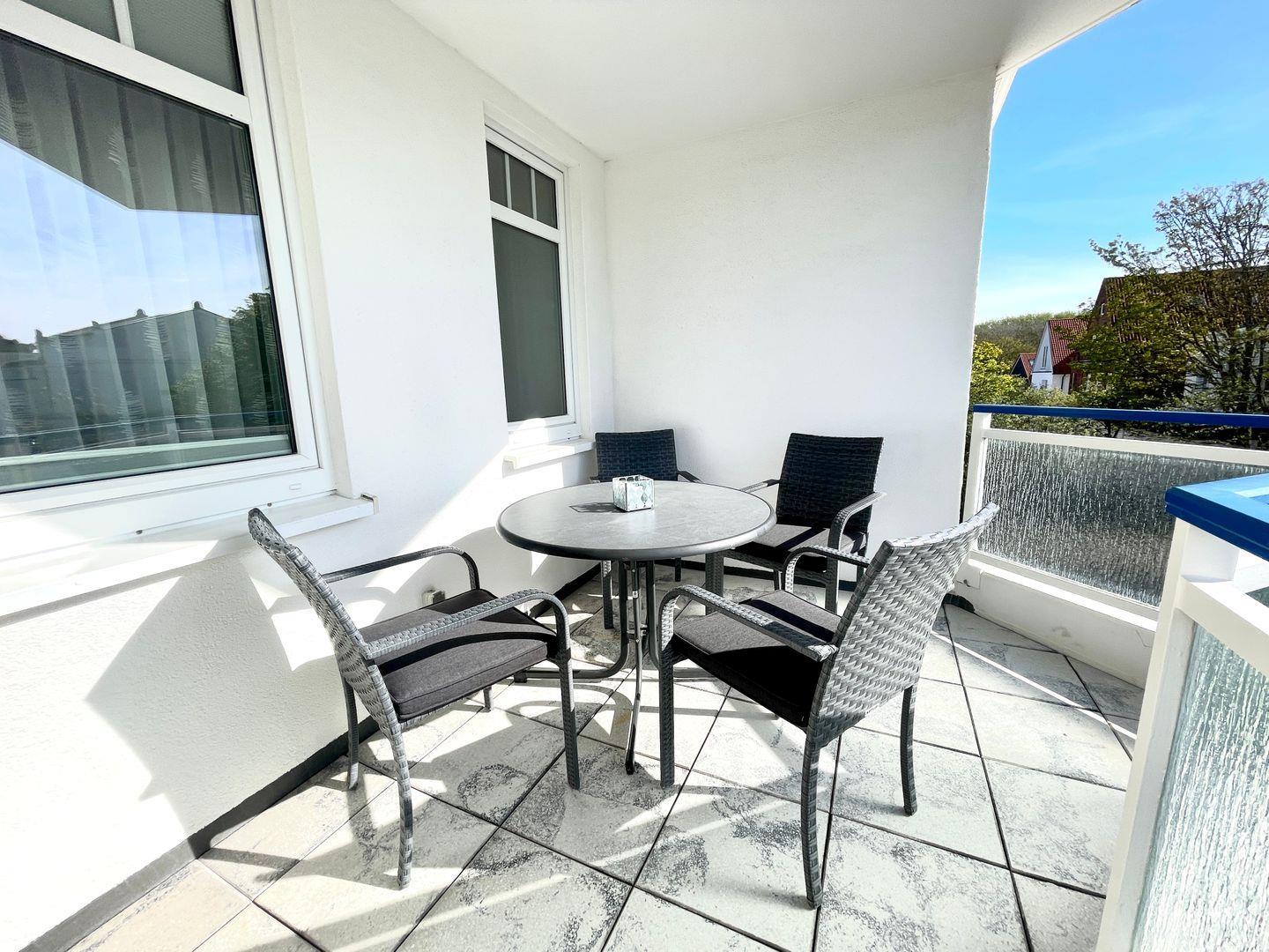 Moderne Ferienwohnung mit Balkon nahe Kurpark auf Norderney, ideal für entspannte Tage und vielfältige Aktivitäten.