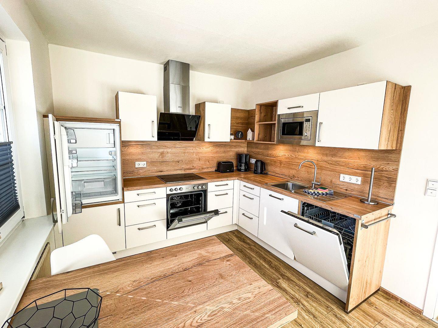 Die Wohnung im 2. OG liegt mitten im Zentrum. Das separate Schlafzimmer mit Doppelbett bietet problemlos Platz für ein eventuell benötigtes Kinderreisebettchen. Auf der vom Wohnzimmer ausgehenden Dachterrasse haben Sie ungesehen einen Ausblick auf das bunte Treiben der Friedrichstraße (Fußgängerzone). Zusätzliche Essecke. Die Küche ist separat und bietet einen Essplatz am Fenster. Das Badezimmer besticht mit einer ebenerdigen XXL-Dusche und WC.