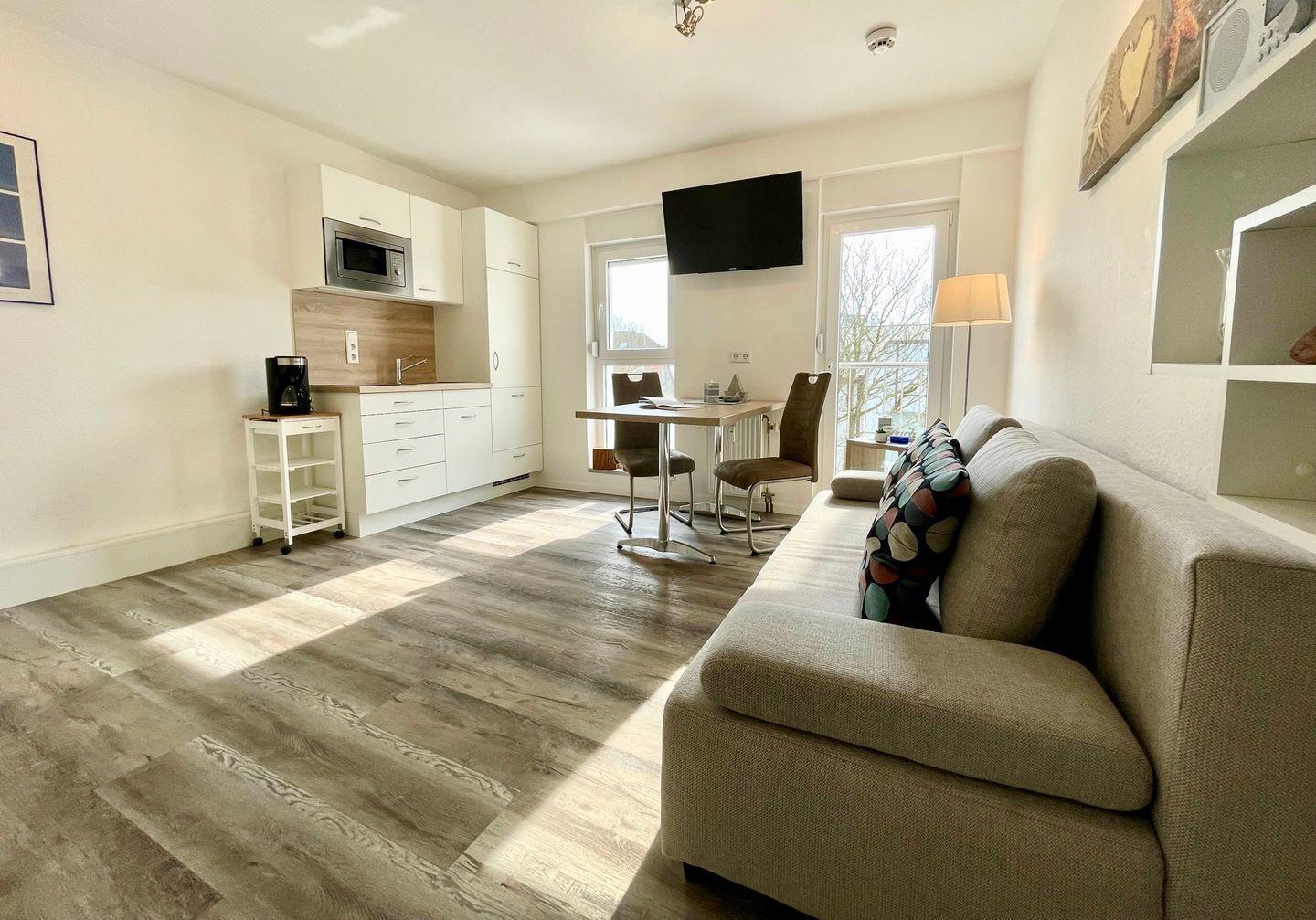 Das gemütliche 1.-Raum-Appartement befindet sich im 2. OG und ist mit einem Aufzug oder auch über Treppen zu erreichen.