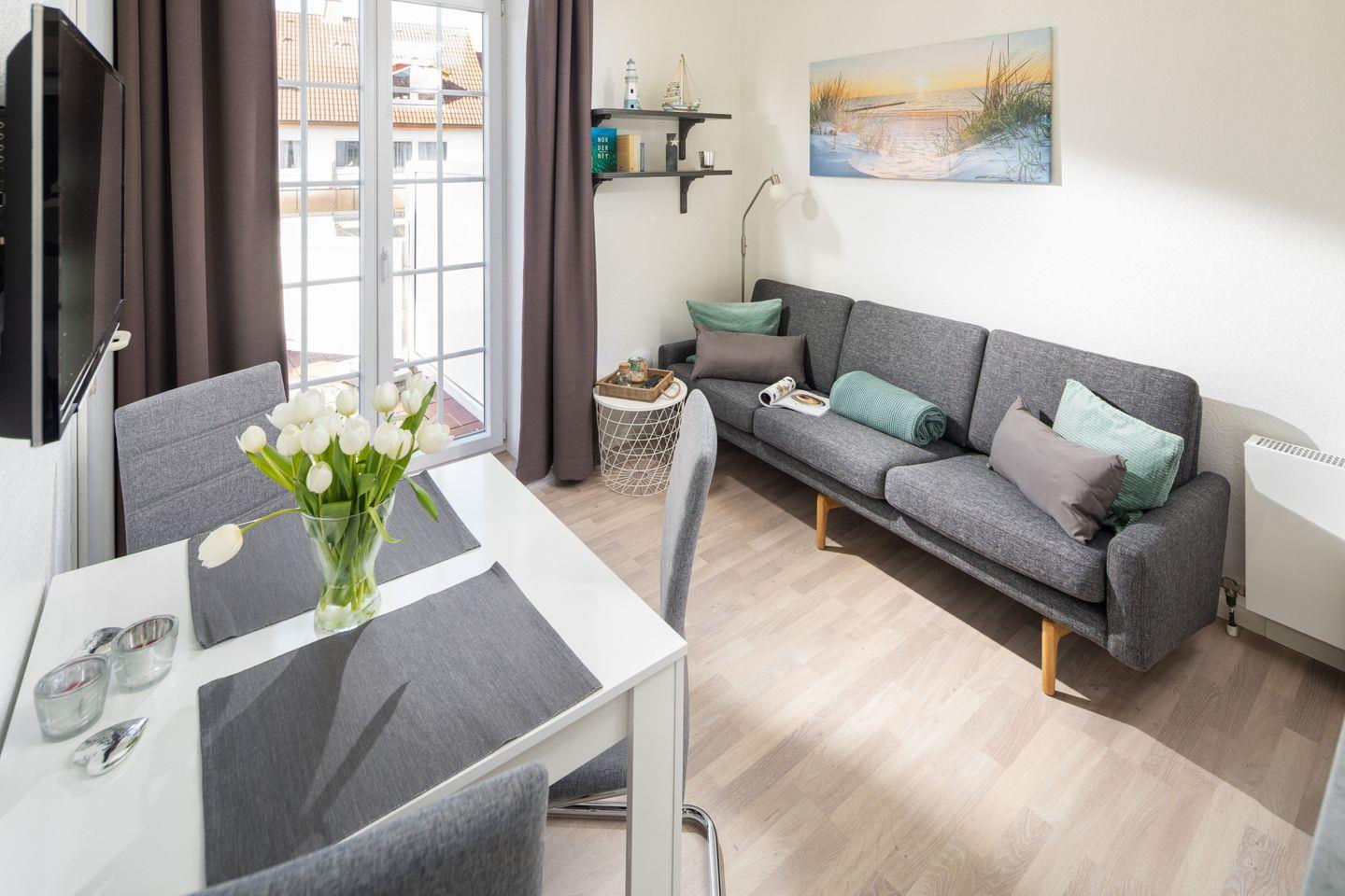 Gemütliche 3-Zimmer-Ferienwohnung mit Sauna und Terrasse auf Norderney, nah am Strand und ideal für Familien und Paare.