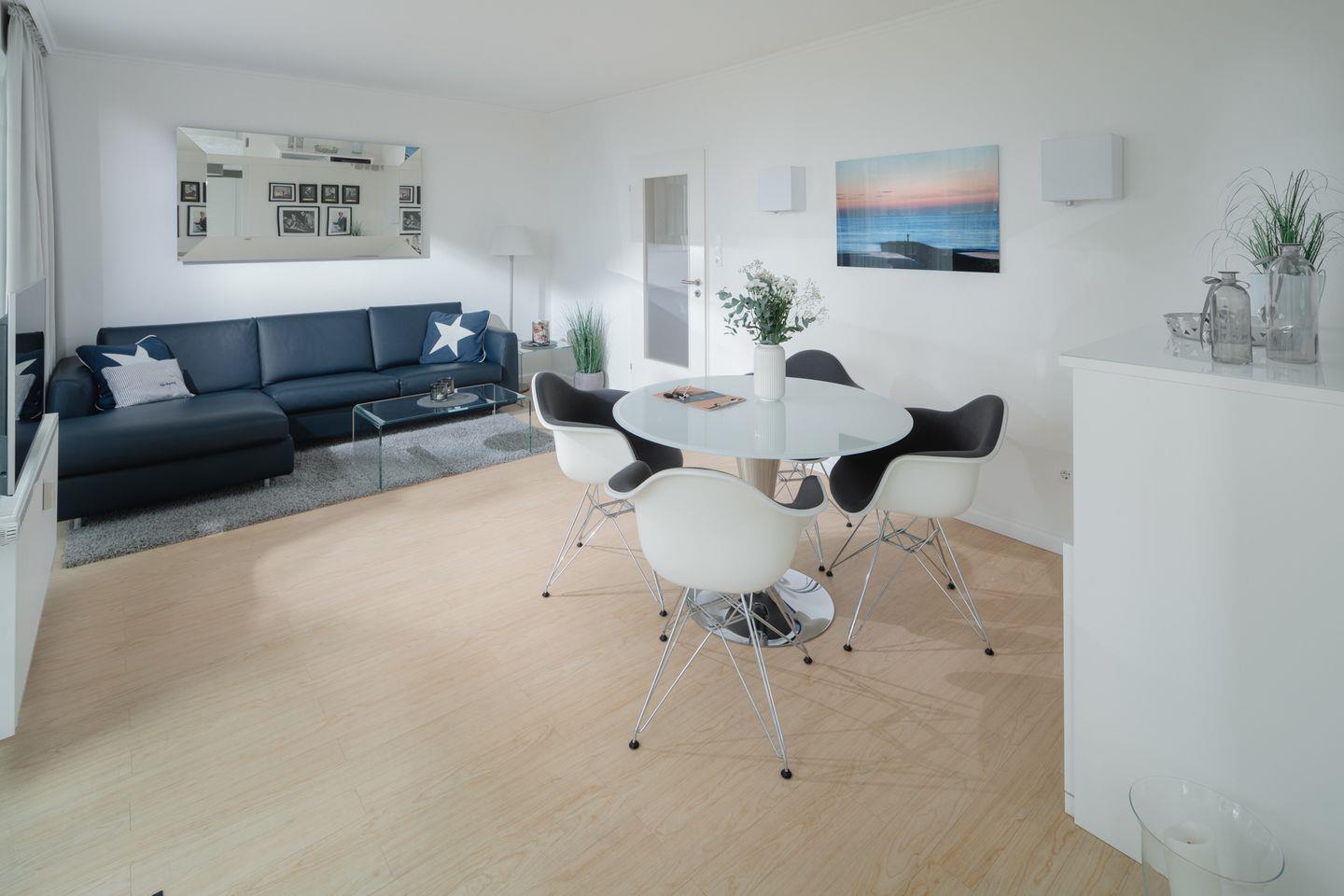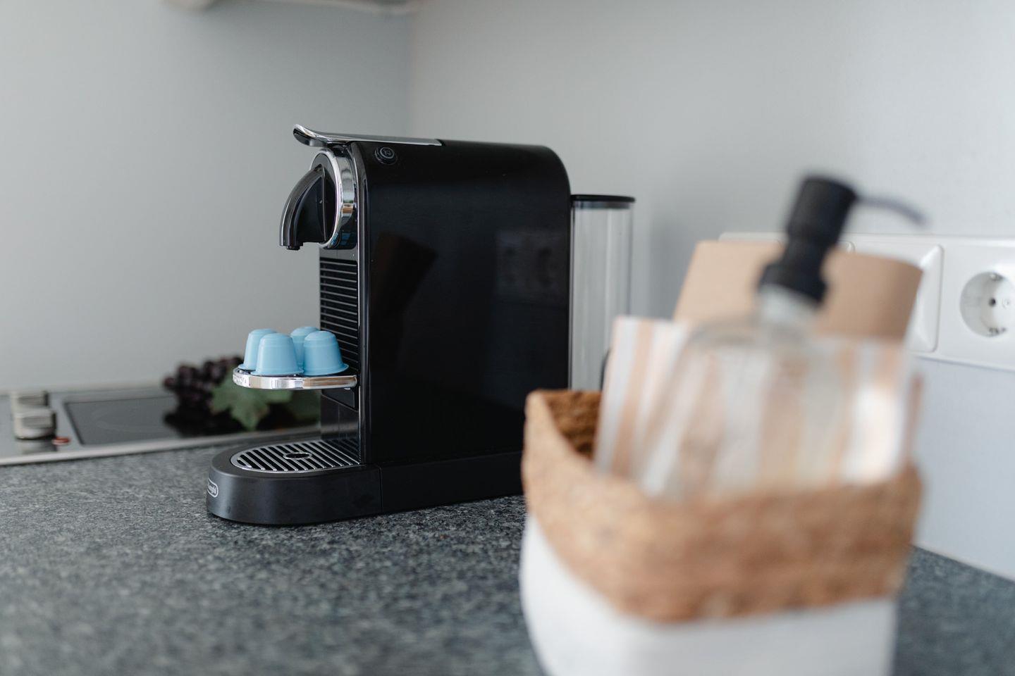 Die Ferienwohnung ist mit einer hochwertigen Einrichtung versehen und verfügt über eine voll ausgestattete Küche mit Spülmaschine, Espresso- und Filtermaschine. Sie können Ihre Mahlzeiten bequem zubereiten und entweder im Essbereich der Wohnung oder auf dem Balkon genießen.