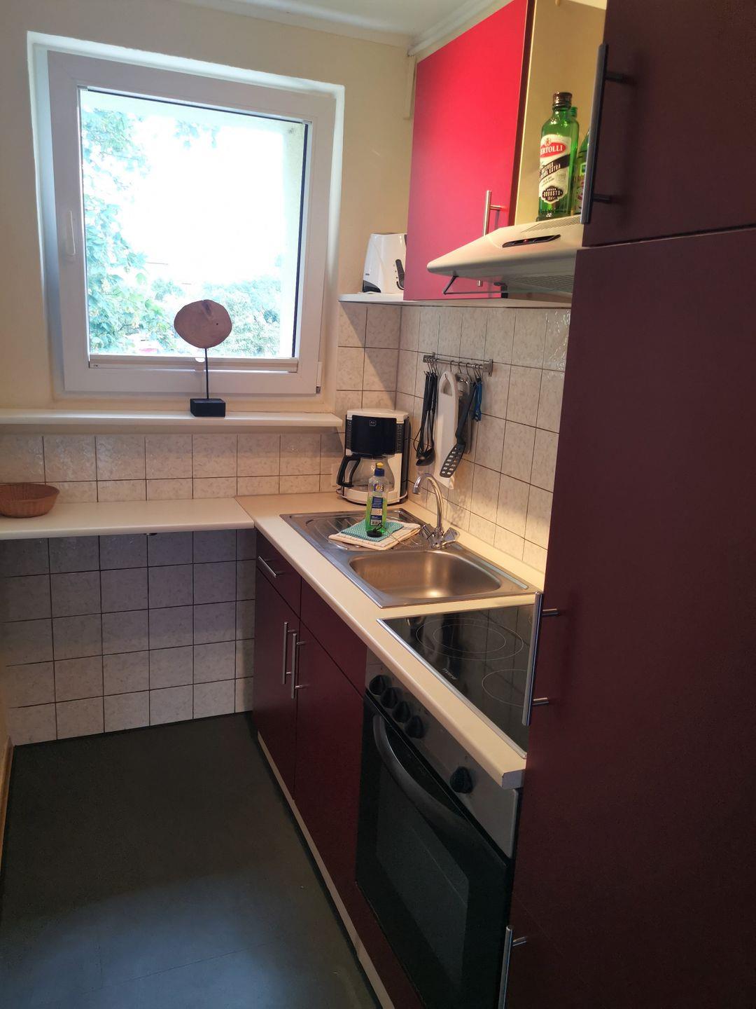 Verfügt über ein separates Schlafzimmer mit Doppelbett, Wohnzimmer mit Essbereich (TV), Küche ist gut ausgestattet: Elektro-Herdplatte, Backofen, Kühlschrank mit Gefrierfach, Kaffeemaschine sowie Badezimmer mit Dusche/ WC (Fenster).