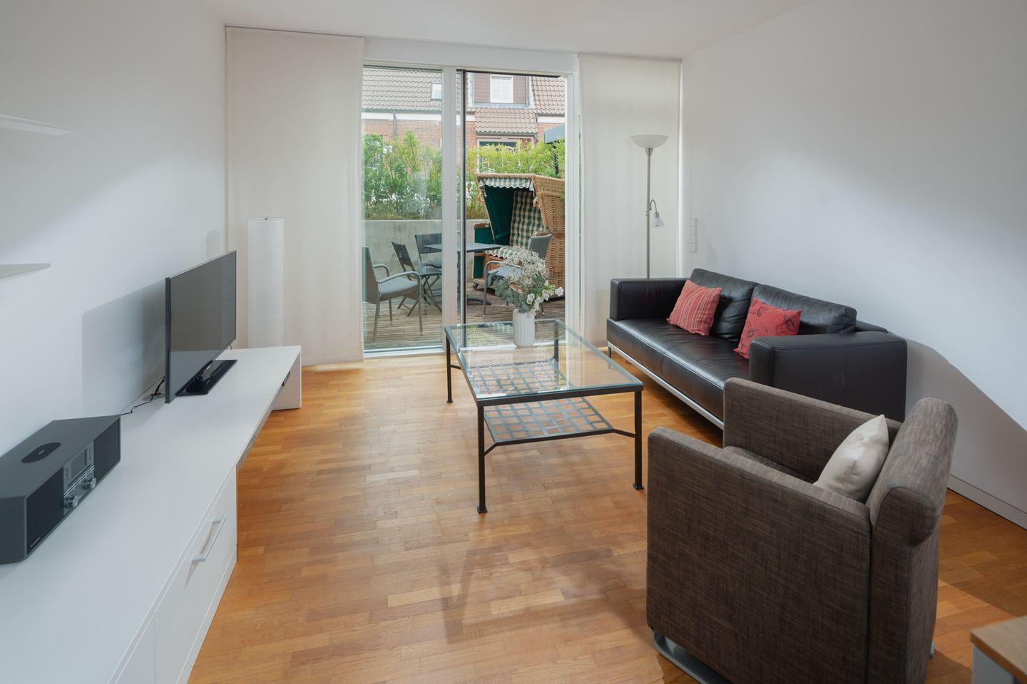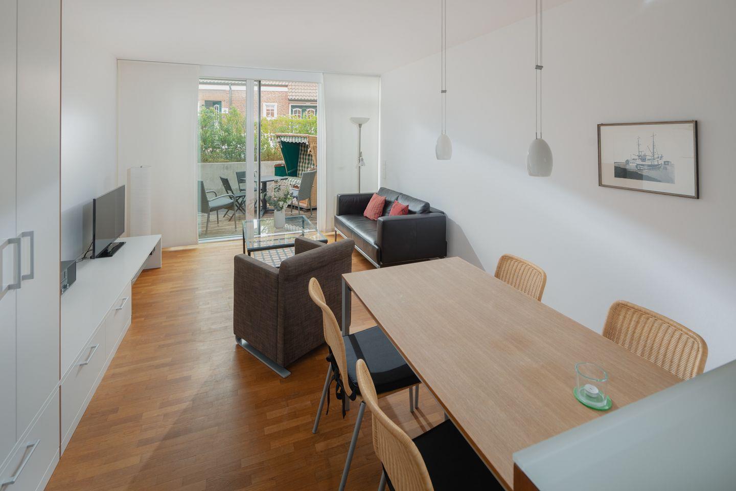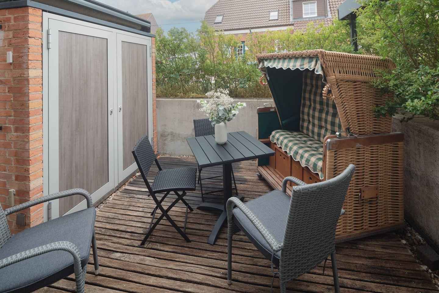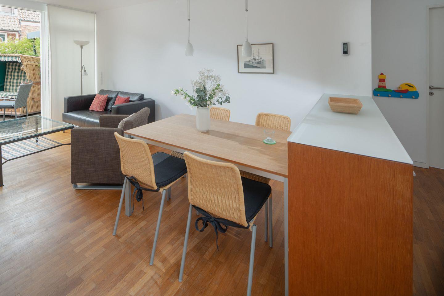 Moderne Ferienwohnung Jade auf Norderney mit Terrasse und Nähe zum Nordstrand, ideal für Naturliebhaber und Familien.