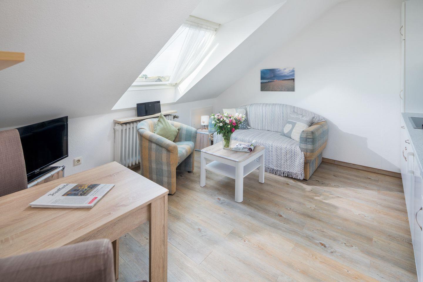Gemütliche 2-Raum-Dachgeschoss-Ferienwohnung auf Norderney, ideal für 1-3 Personen, nur 800 m vom Strand entfernt.