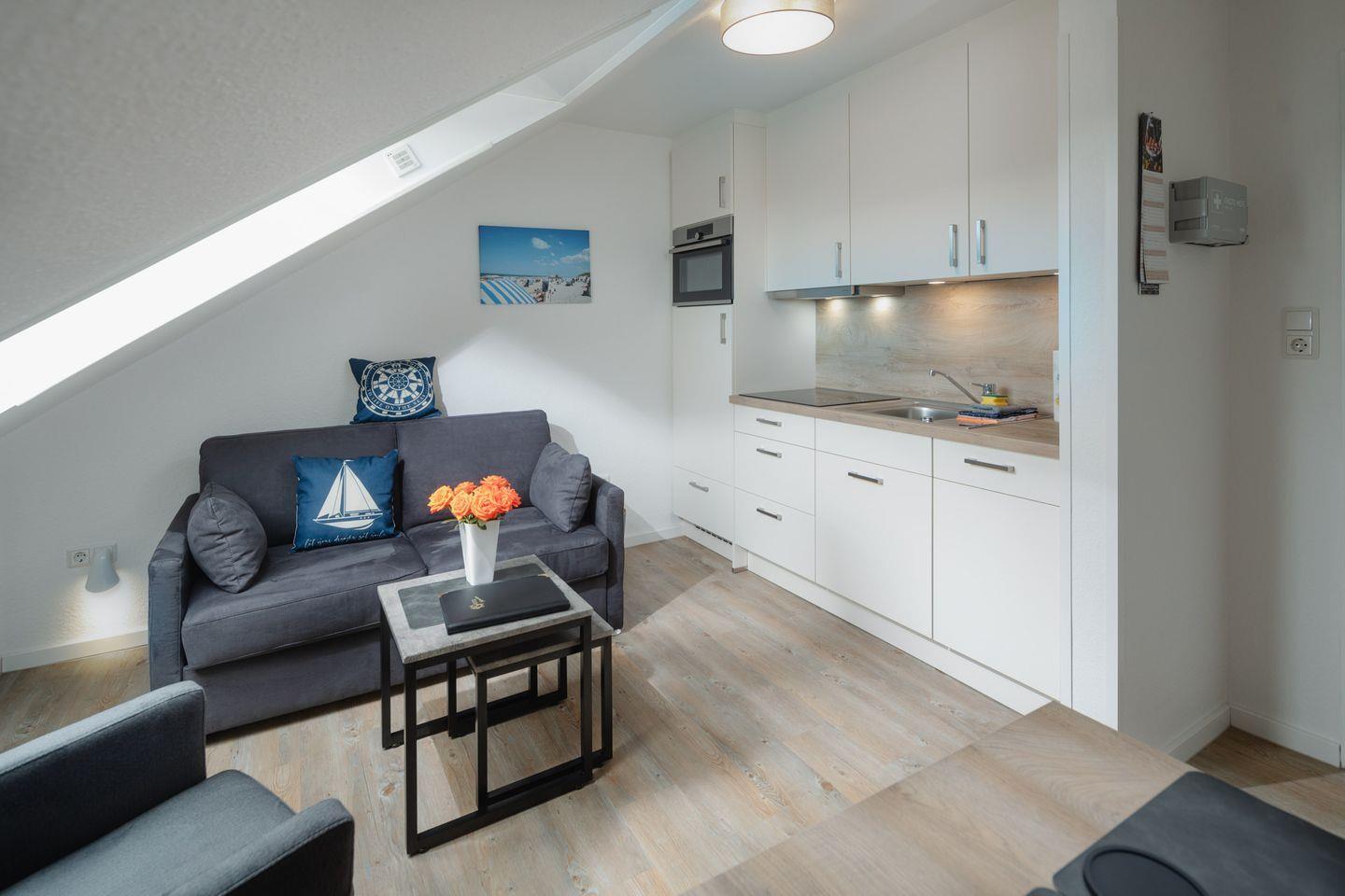Gemütliche 4-Sterne-Dachgeschosswohnung nahe Strand auf Norderney mit moderner Ausstattung für bis zu 3 Personen.