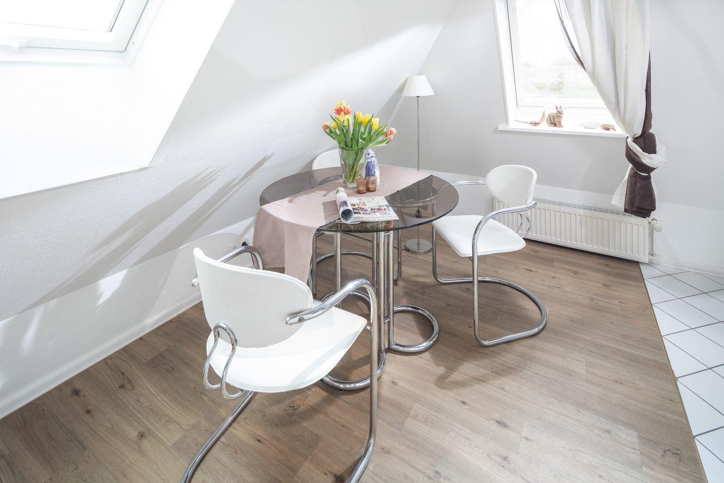 Willkommen in der Ferienwohnung "Wattblick"! Diese gemütliche Ferienwohnung befindet sich in der 2. Etage und bietet Platz für 2 Personen sowie Ihren treuen Hund. Bitte beachten Sie, dass das Badezimmer sich in der 1. Etage befindet und Sie eine Treppe hochgehen müssen, um zum Wohn- und Schlafzimmer mit Küche zu gelangen.