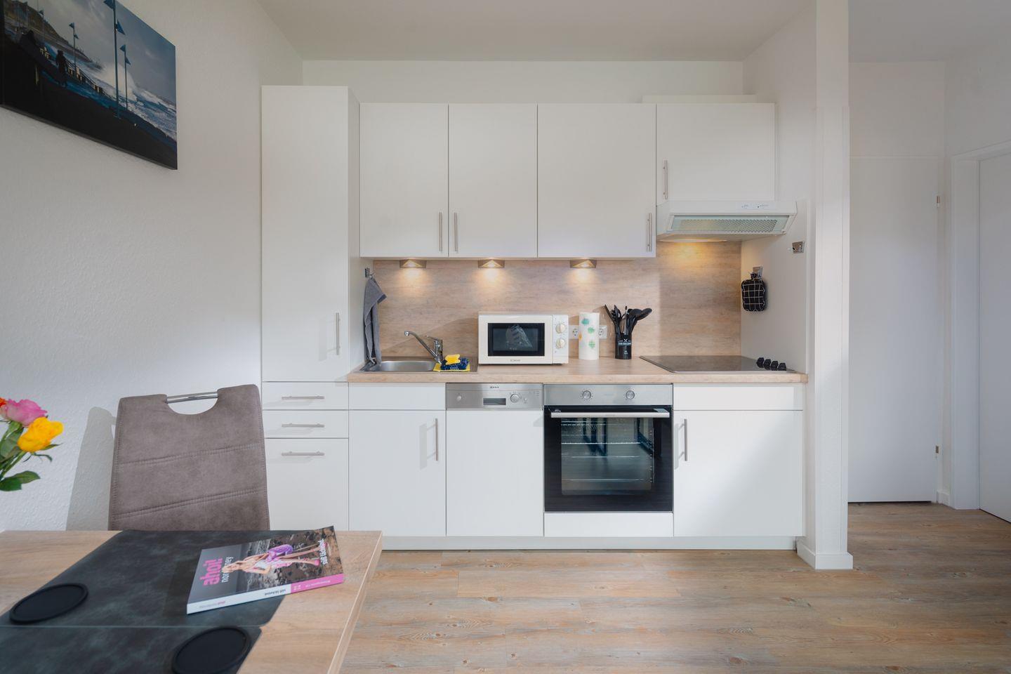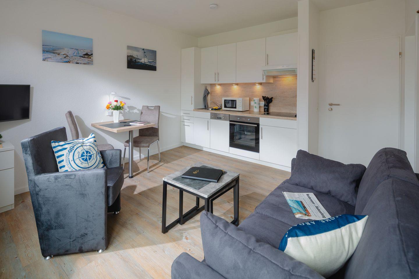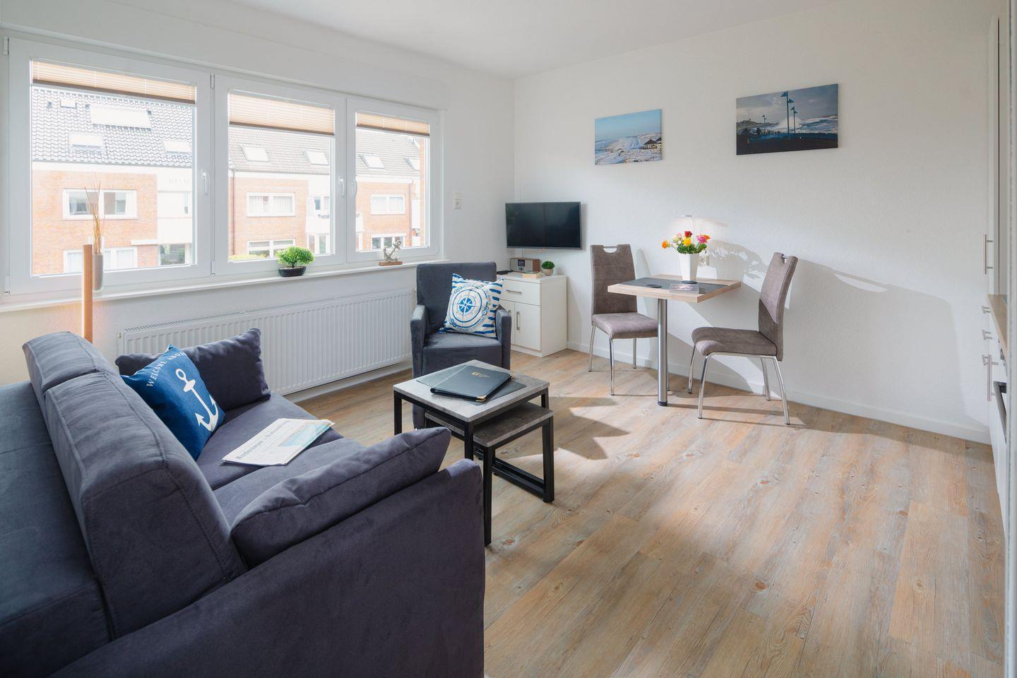 Gemütliche 4-Sterne-Ferienwohnung auf Norderney, nahe Strand und Einkaufsmöglichkeiten, ideal für bis zu 3 Personen.